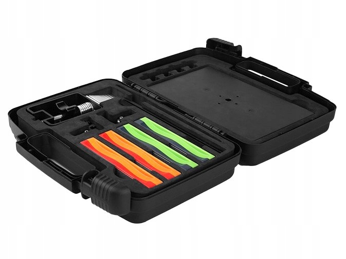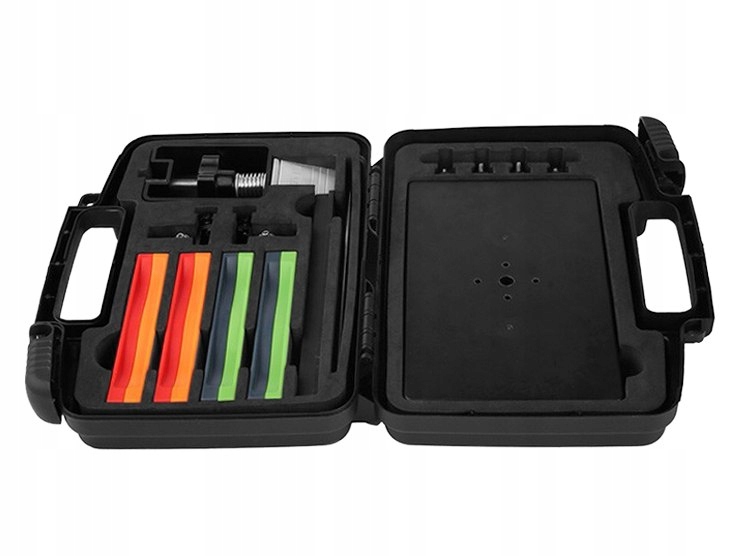 - Елементи набору точила: полімерна основа, кутова напрямна, алмазні камені (4 шт.), збірка, коробка