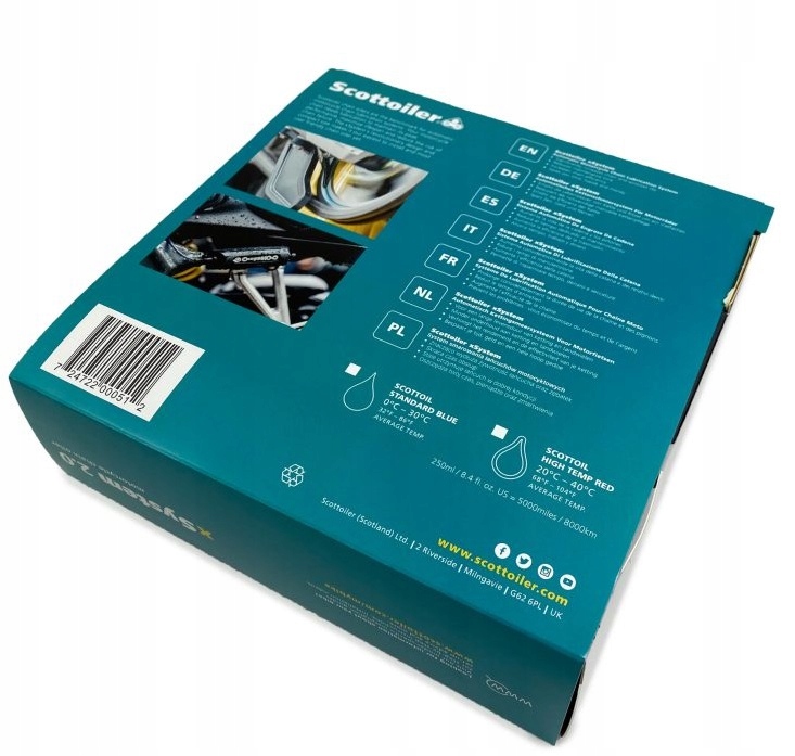Набір складається з бака та аксесуарів, які подають масло до ланцюга та зірочки. Пляшки Scottoil об’ємом 250 мл достатньо, щоб заповнити резервуар чотири рази. У набір також входять різноманітні елементи, які дозволяють складати набір різними способами (залежно від умов).