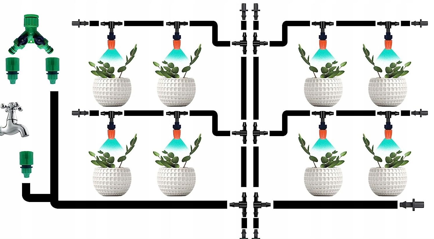 ✅ Повний набір - Набір крапельного зрошення містить усі необхідні елементи для запуску системи за допомогою крана або садового шланга.