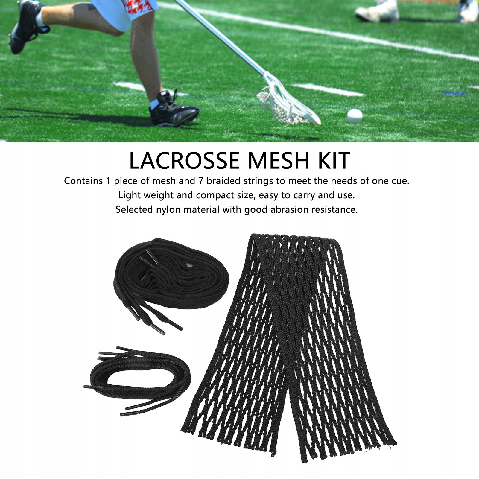 Sznurek z siatki do lacrosse Czarny, nylonowy, odporny na zużycie sznurek z