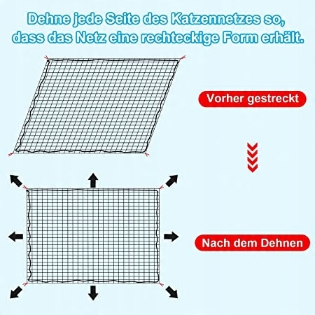 Захисна сітка для котів: наша балконна сітка для котів запобігає падінню котів з балкона та забезпечує безпеку котів на висоті під час гри, навіть коли вас немає поруч. Сітка для кішок ідеально підходить для балконів, терас, двориків і навіть вікон і дверей. Після встановлення ви та ваша кішка напевно насолоджуватиметеся розширеним середовищем існування на балконі, яким зможете користуватися цілий рік.