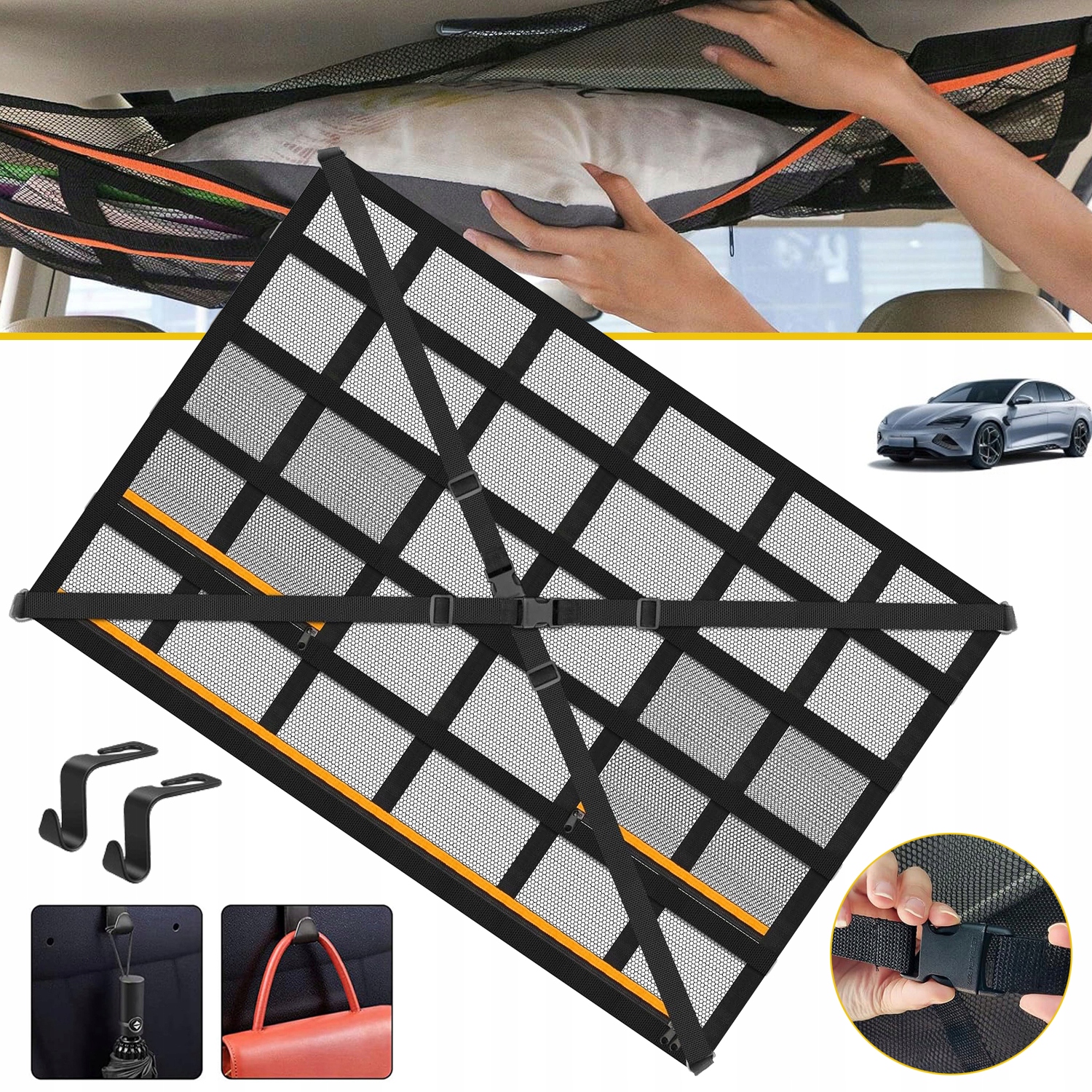 🚗 велика ємність: Завдяки розмірах 90 см х 65 см Ця сітка для подвійної багажи з двома гачками забезпечує достатньо місця для багажу. Сітчаста сумка на стелі автомобіля легко зберігає хустки та різні іграшки для дітей. Під час кемпінгу ви також можете зберігати великі легкі предмети, такі як подушки, ковдри, куртки вниз. Це запобігає руху або падінню предметів під час руху, він довговічний і безпечний.