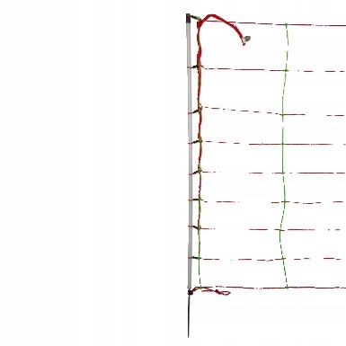 Простий у встановленні та чітко видно: сітка оснащена 14 вбудованими дюбелями, які дозволяють швидко та проста установка. Червоні дроти забезпечують хорошу видимість. Певне утримання на горбистій області: інтегровані жорсткі вертикальні елементи забезпечують сітку стабільне положення навіть на нерівній місцевості. Оптимальний захист забезпечується 8 горизонтальними, електричними смугами,