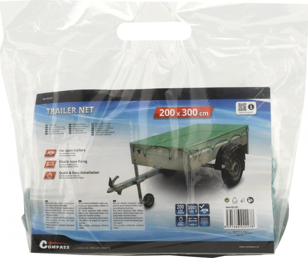 Сітка призначена для покриття вантажу причепа та захисту вантажу від пошкодження та втрати з вантажної поверхні. Розмір сітки повинен відповідати розмірам причепа, сітка має розмір 200 х 300 см з квадратним вічком 4 х 4 см.