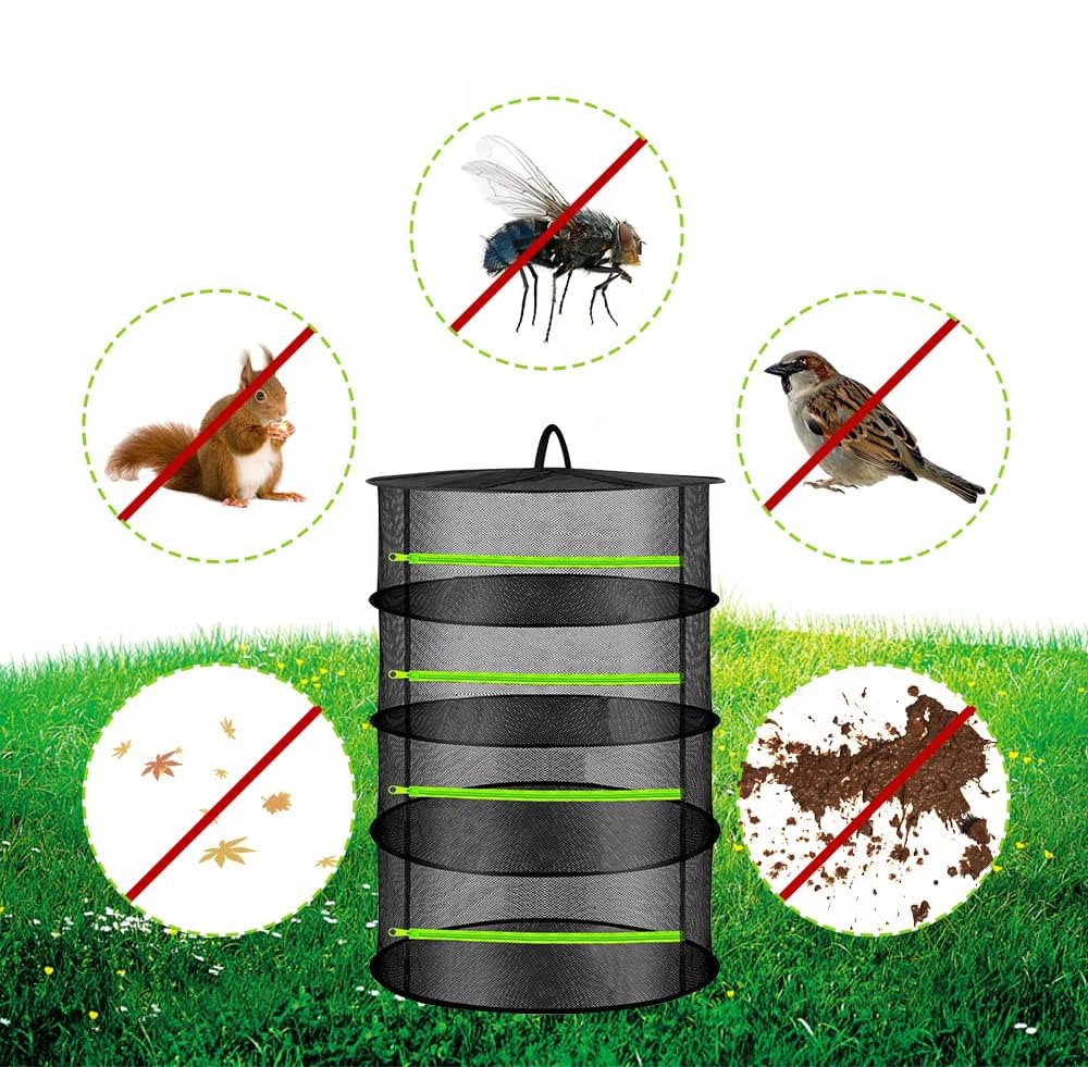 Дихає сітка з високою еластичністю та високою міцністю на розрив і забезпечує ефективне повітря потік, ефективна циркуляція та вентиляція. 4-шарова конструкція, висота кожного шару 19 см. Він займає мало місця і може вільно використовуватися залежно від кількості речей, які потрібно висушити. Кожен шар оснащений вбудованим гнучким сталевим кільцем, яке має чудові антиокислювальні та деформаційні властивості, не деформується та не іржавіє. Складану конструкцію можна зібрати за лічені секунди та скласти для зручного зберігання. Це економить місце. Закрита блискавка дозволяє легко відкривати та закривати. Конструкція проти протікання на бічних стінках кожного шару, не турбуйтеся про витоки. Ідеально підходить для сушіння різних предметів, таких як медичне приладдя, їжа, рослини, крупи, зерно, спеції, боби, одяг тощо.