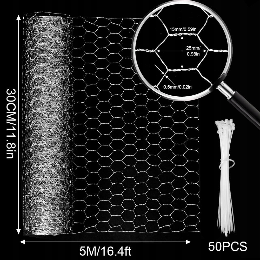 Сітку розміром 30 см x 5 м можна легко відрізати до необхідної довжини та форми. Набір містить 50 нейлонових кабельних стяжок, які полегшують установку на огорожі, дереві чи інших поверхнях. Надлишок матеріалу? Зв'яжіть і зберігайте зручно!