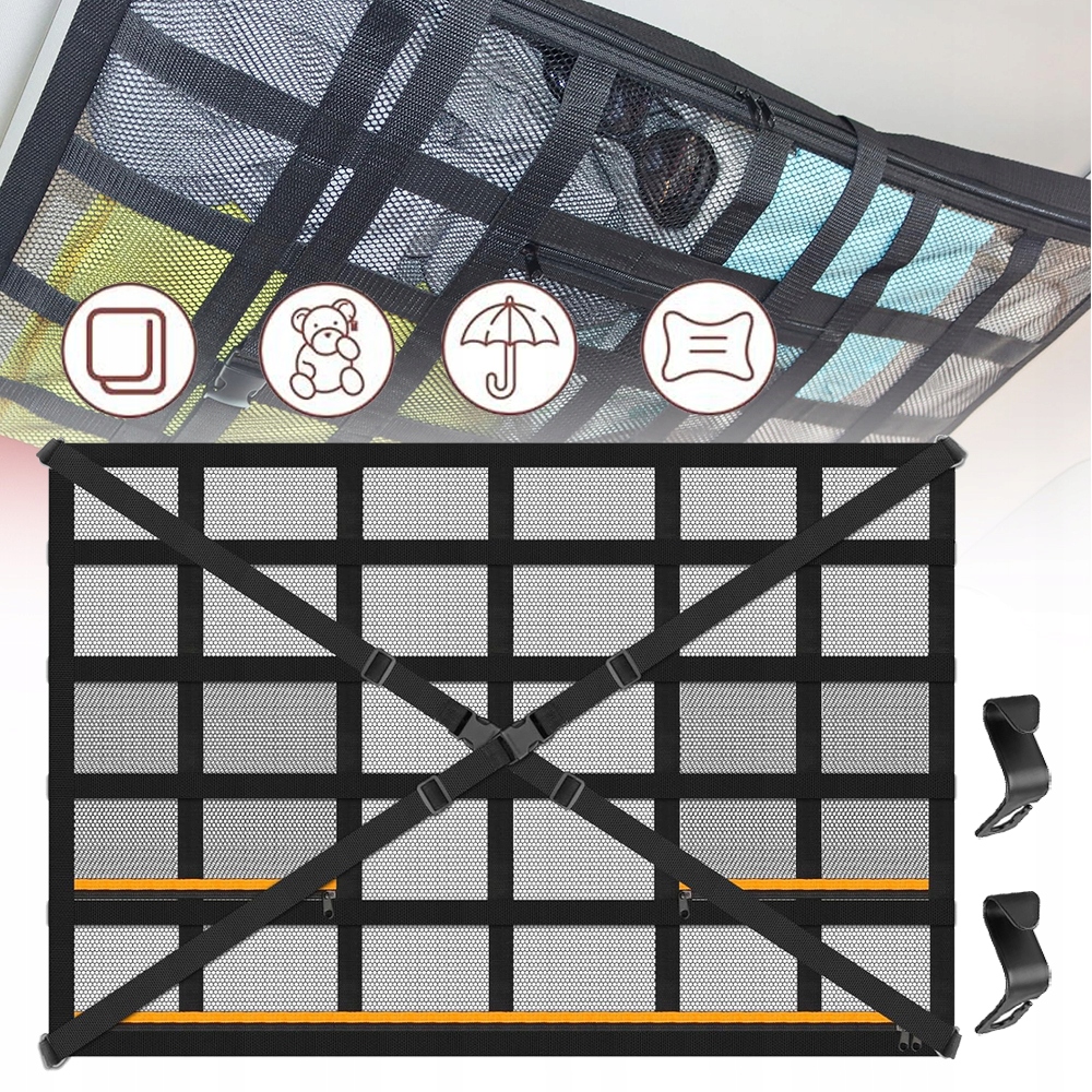🚗【Економія місця, велика місткість】Оновлена версія автомобільної сумки для зберігання SUV оснащена 2 застібками. Легкі речі, такі як дитячі ковдри, дитячі іграшки, серветки тощо, можна зберігати в сумці для зберігання позашляховика від стелі до стелі. Ця конструкція допоможе вам зберігати багато предметів неправильної форми. Завдяки прозорій сітці ви можете легко знайти свої речі.