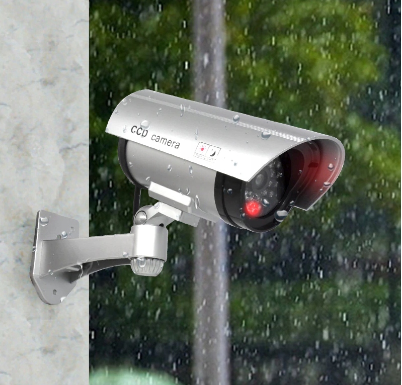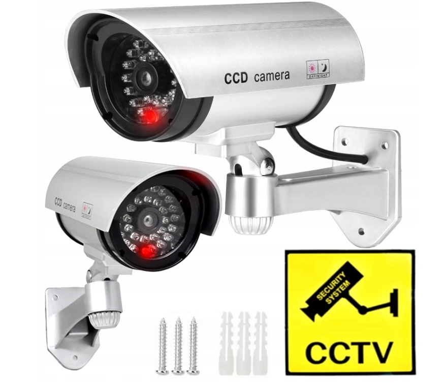 Макет промислової камери для моніторингу. Завдяки використанню всіх елементів, які має звичайна камера, тобто об’єктив, кабель і тримач, манекен є точною копією промислової камери. Камера також має пульсуючий червоний світлодіод, який засвідчує наше спостереження в очах можливих зловмисників. Вбудовані фіктивні інфрачервоні (ІЧ) діоди створюють враження, що камера також записує зображення в умовах поганого освітлення та вночі. Якщо ви боїтеся за своє майно і не хочете вкладати багато грошей у професійну систему моніторингу, цей продукт створений для вас! Будьте впевнені, що жодна стороння особа не опиниться на вашій приватній території, побачивши такий ідеальний муляж промислової камери!