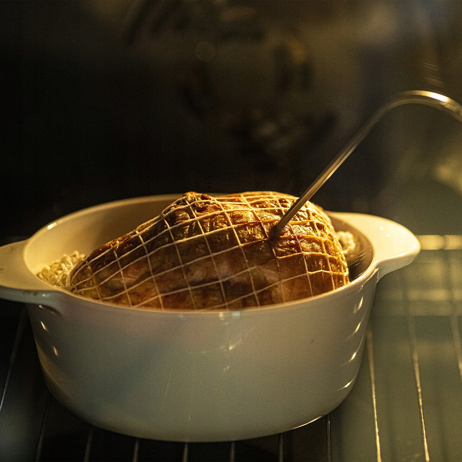Завдяки використанню високоякісних матеріалів біла м'ясна сітка Browin є гнучкою - в неї можна помістити продукти з поперечним перерізом до 12,5 см і масою від 0,5 до 1 кг. М'ясну сітку можна безпечно використовувати під час термічної обробки при максимальній температурі до 220°C.
