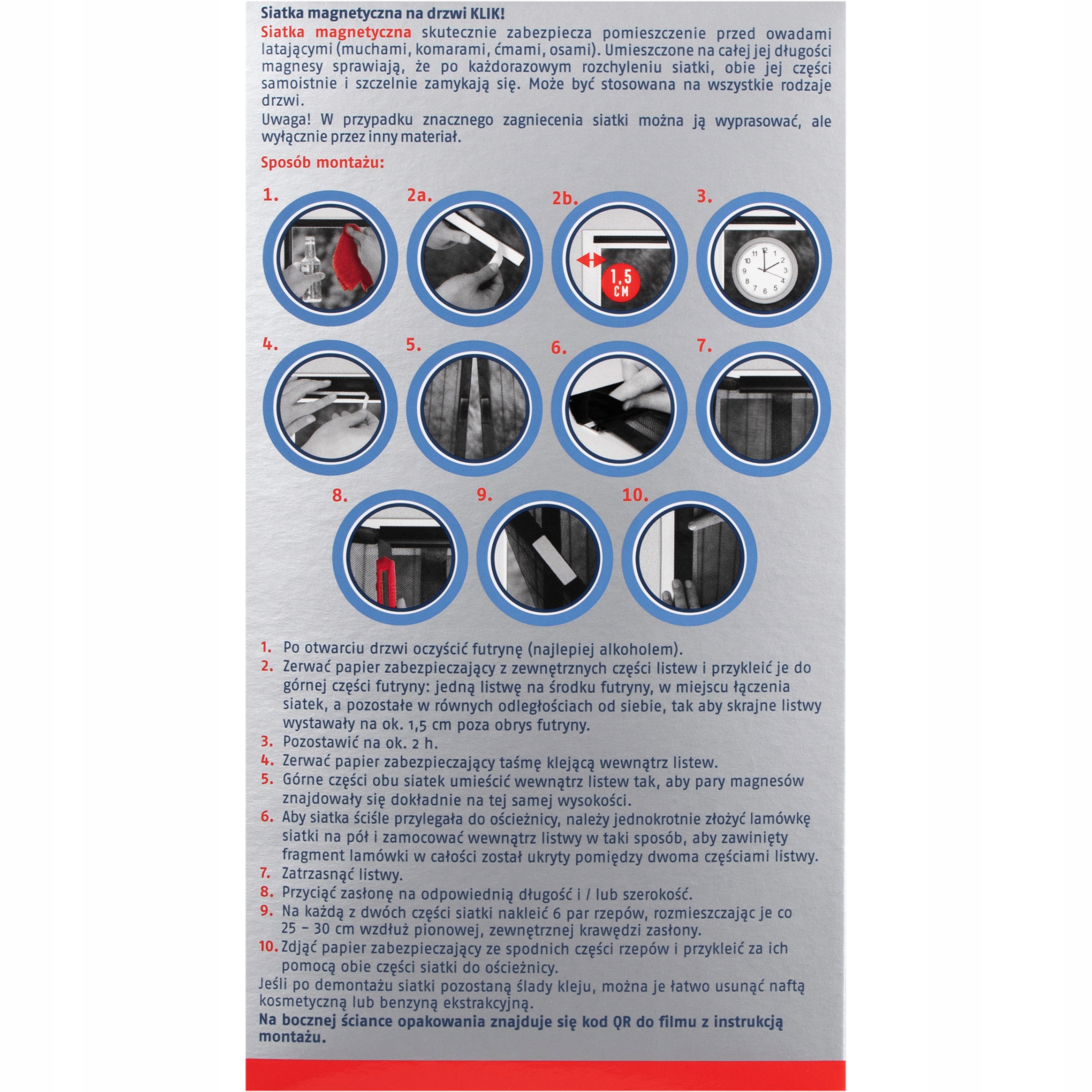 10. Зніміть захисний папір з нижньої сторони застібок-липучок і приклейте ними обидві частини сітки до дверної коробки.