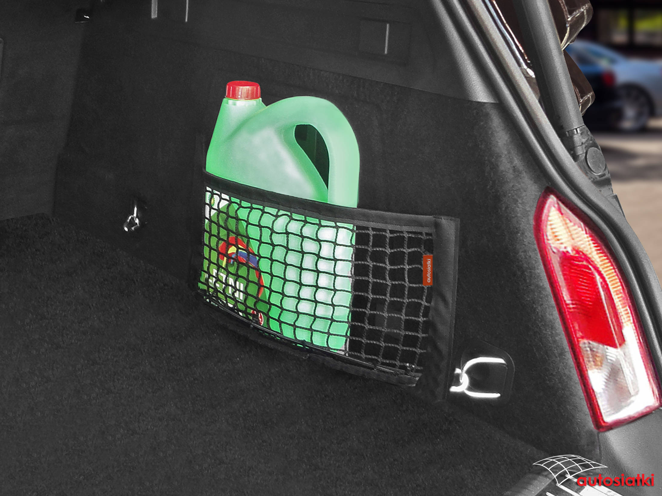 Це міцна сітка з липучками з боків. Покритий гнучкою гумою зверху та знизу, що дозволяє регулювати сітку відповідно до предметів, що транспортуються. Огорожа кріпиться до килимка в багажнику або салоні автомобіля.