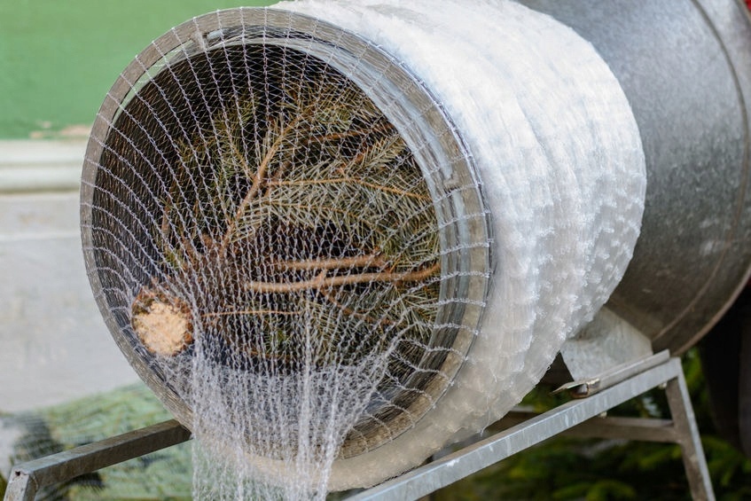Сітка у формі рукава призначена для ручного пакування новорічних ялинок, пристосована для розміщення на трубі діаметром 55 см і менше.
