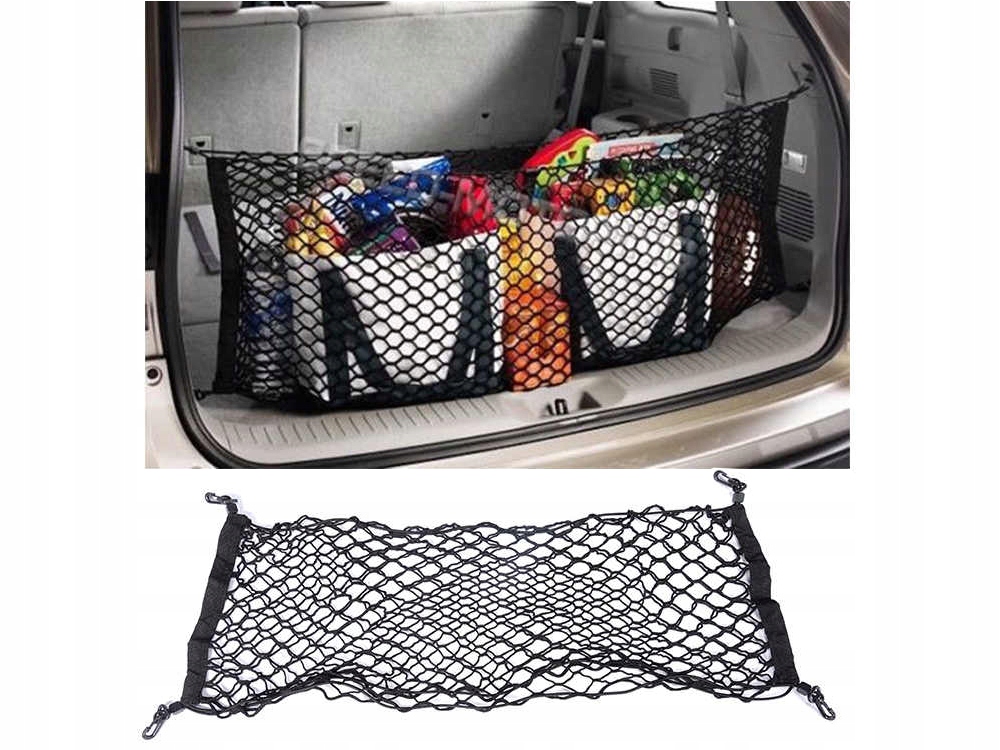 Високоякісна сітка для багажника автомобіля, яка збереже ваш автомобіль охайним. Це гарантуватиме безпечне транспортування товарів, які є частиною обладнання автомобіля, а також допоможе транспортувати щоденні покупки, щоб вони не " літати" навколо стовбура.