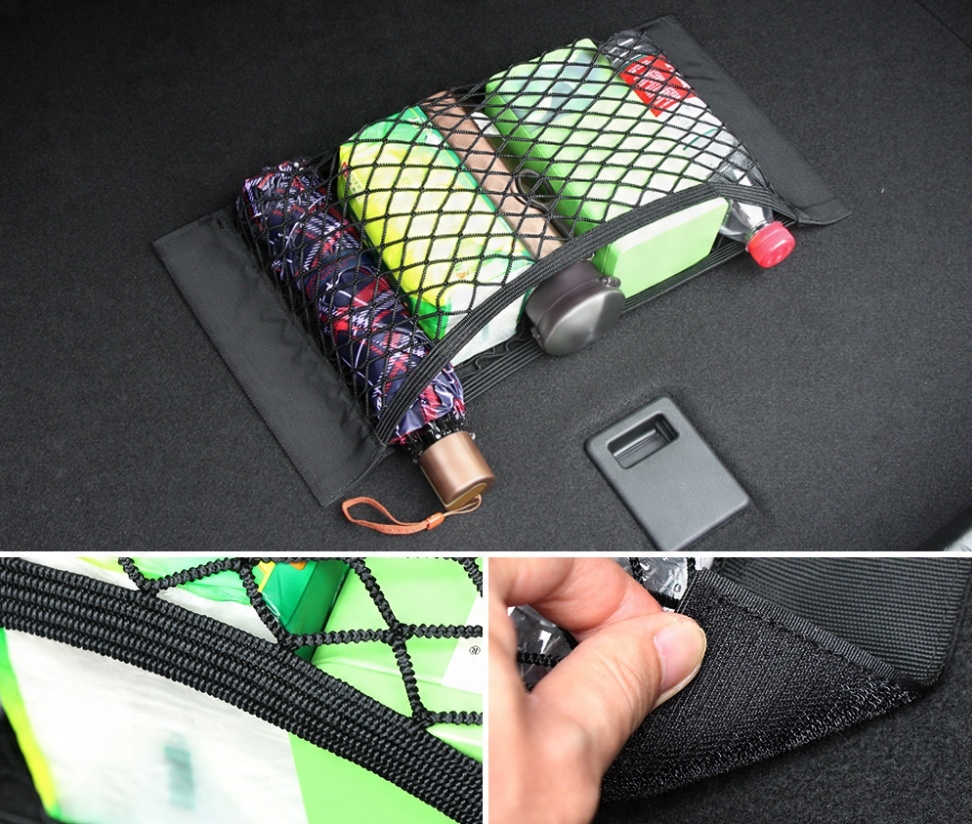 - Надзвичайно простий у встановленні. Просто розпакуйте сітку та прикріпіть її до оббивки багажника за допомогою липучок.