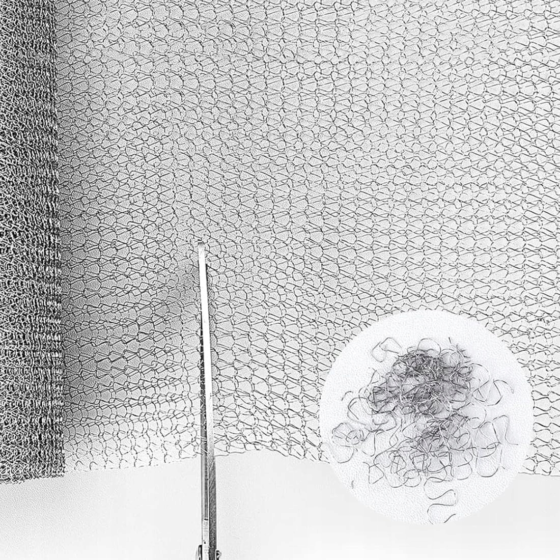 Ця ретельно зроблена сітка характеризується рівномірним розподілом, щільними стібками та відповідною товщиною. Для вирізання сітки потрібні міцні ножиці. Для різання з різними формами та розмірами використовуйте дротяні різаки або ножиці.