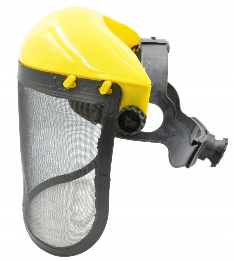 Професійний сітчастий щиток для обличчя виготовлений із твердого ПВХ і ефективно захищає від дрібних елементів, наприклад під час косіння трави. Захисні маски цього типу забезпечують повну видимість користувача та забезпечують захист від осколків під час роботи. Верхня частина виготовлена з міцного поліетиленового пластику, має модернізовану - модель 2022 - більш надійну систему регулювання кута нахилу маски. Для підвищення безпеки та комфорту передня частина головного убору покрита поролоном. Крім того, вбудована конструкція захищає очі, обличчя та шию.