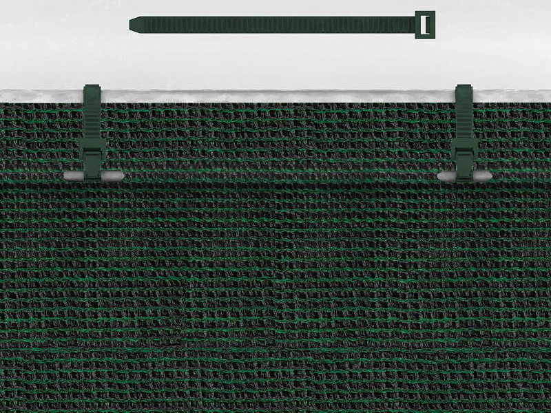 Сітки для затінення найчастіше кріпляться за допомогою пластикових самозажимних смуг. Це, безперечно, найпростіший, ефективний і відносно швидкий спосіб встановлення.