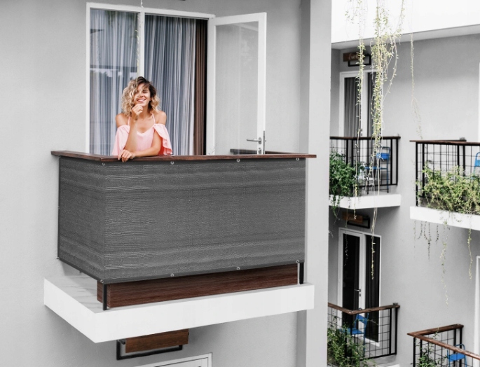 Захисний килимок – ідеальне балконне покриття. Це не тільки надає охайний вигляд, але і є практичним захистом від вітру і цікавих сусідів. Завдяки балконному покриттю ми можемо швидко та легко перетворити наш простір, де все, що ми можемо зробити, це віддатися блаженній ліні.