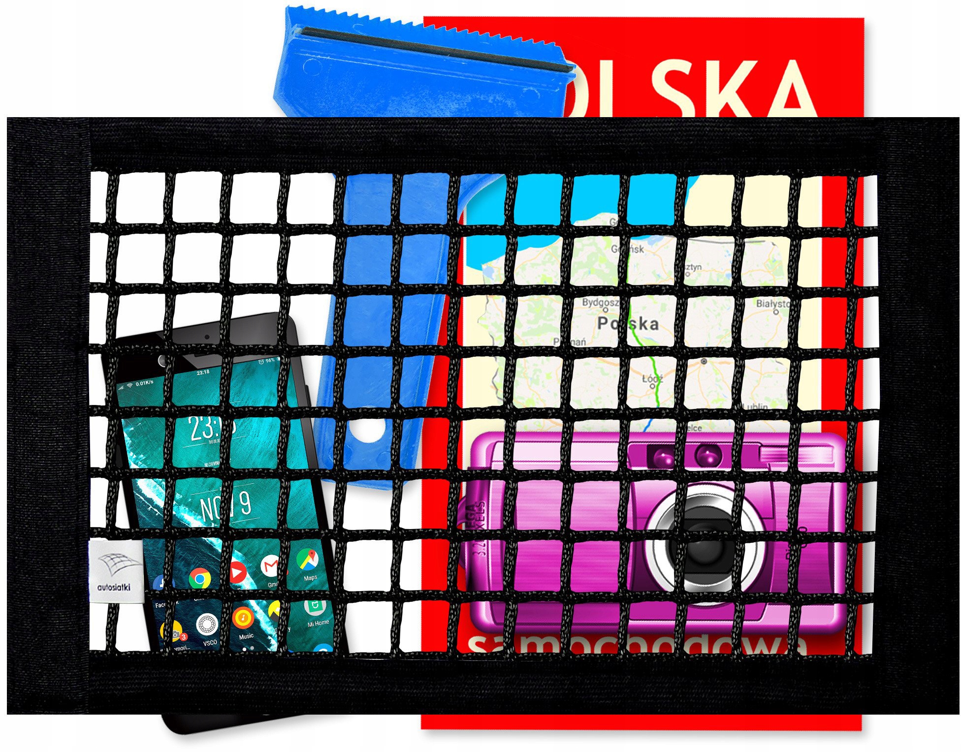 Оснащений липучками лише з боків. Тому ми найчастіше знаходимо його встановленим прямо над підлогою. Він добре працюватиме в невеликих заглибленнях. Відгороджений таким чином кут стане ідеальним місцем для зберігання вогнегасника чи склоомивача.