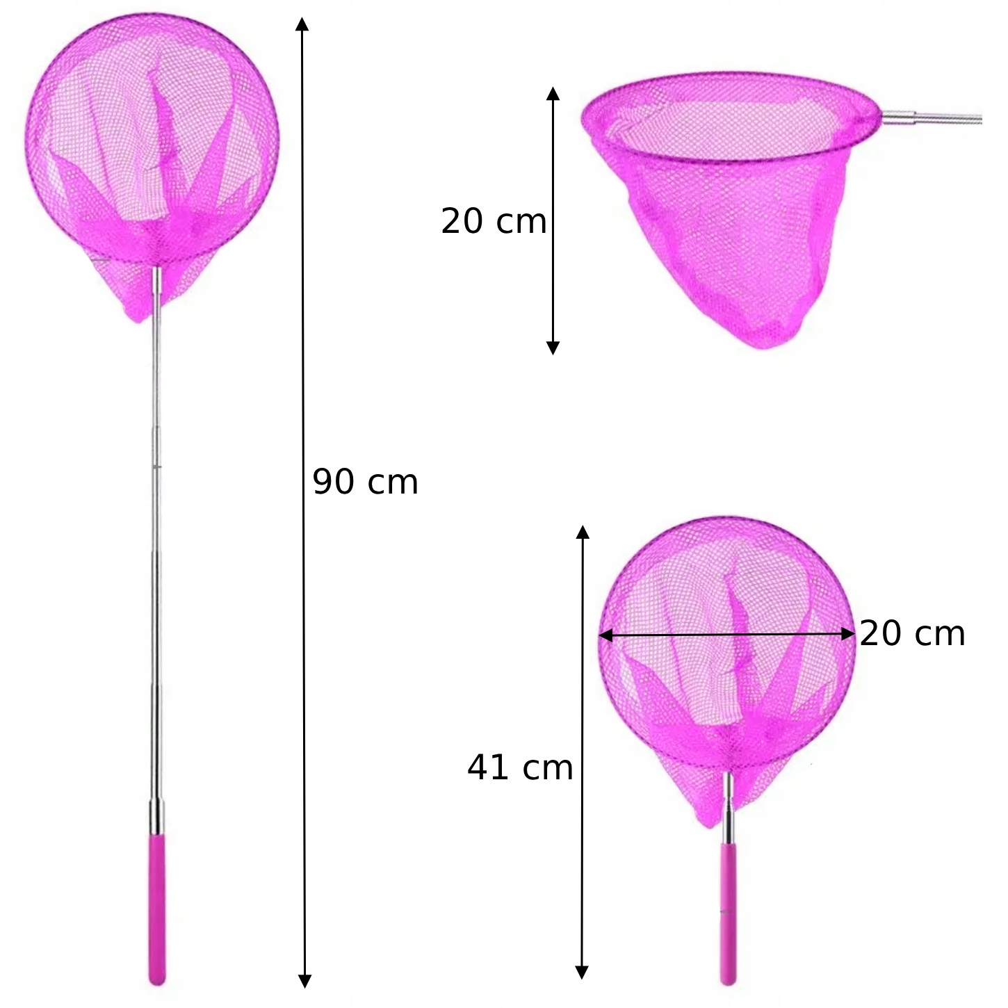 сітка для лову метеликів та рибного телескопічного рожевого - ідеальний інструмент для кожного любителя природи! Завдяки телескопічній конструкції сітка надзвичайно функціональна - ви можете легко адаптувати її довжину до своїх потреб, і після використання ви можете скласти її для ущільнення, що полегшує зберігання та транспорт. Рожевий, естетичний колір робить сітку виділятися від інших, а її суцільна конструкція забезпечує довгострокове використання. Легкий і зручний, ідеально підходить як для полювання метеликів, так і для риболовлі в ставку чи озері. Завдяки делікатній, але довговічній сітці, тварини в безпеці, і ви можете насолоджуватися їх відкриттям. Ідеально підходить для подарунка або як необхідний для любителів природи!