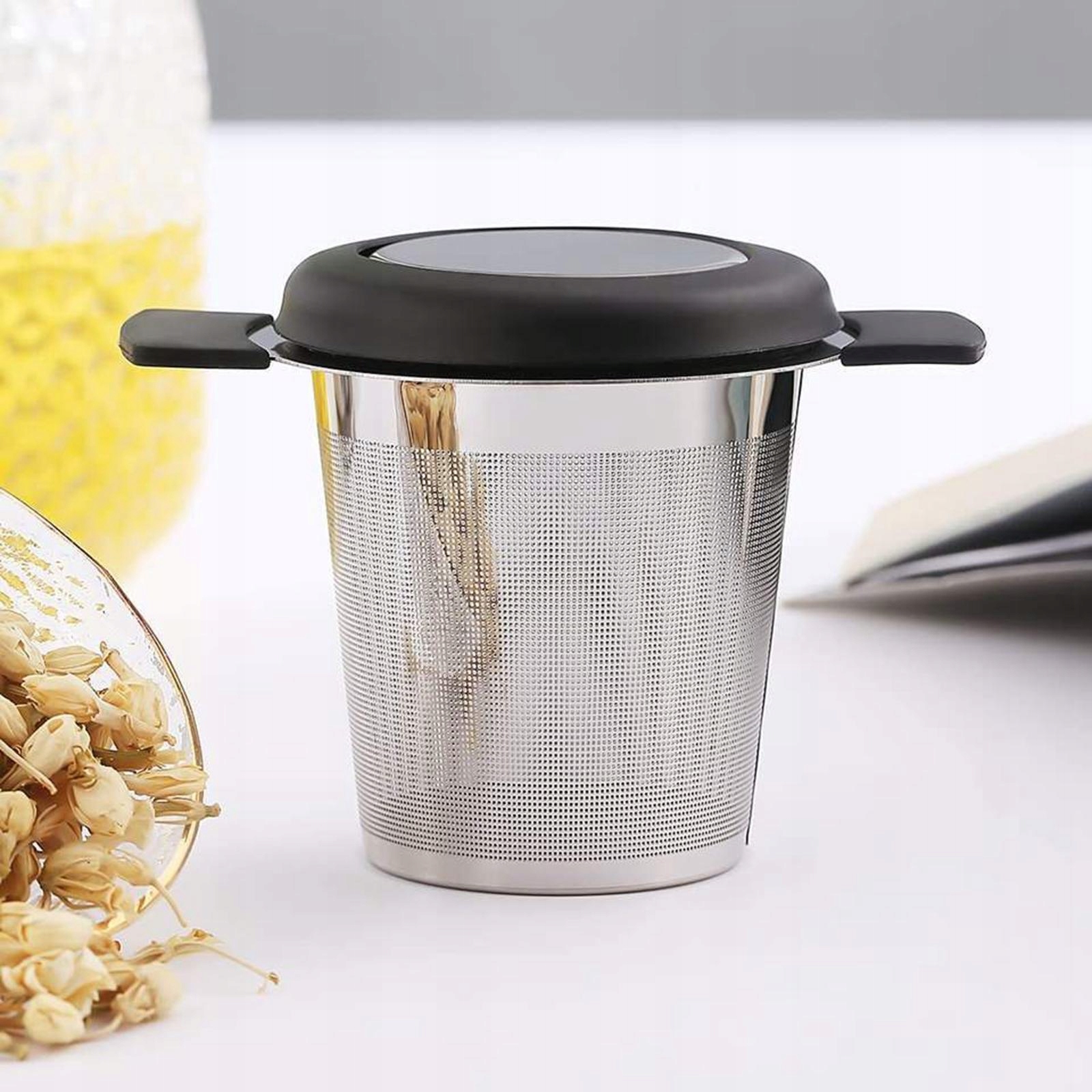[з кришкою] ситечко для завивання сипучого чаю оснащений кришкою та подвійною, стійкою до тепла силіконової ручки, що забезпечує безпечні та легкі та легкі, які виливають.