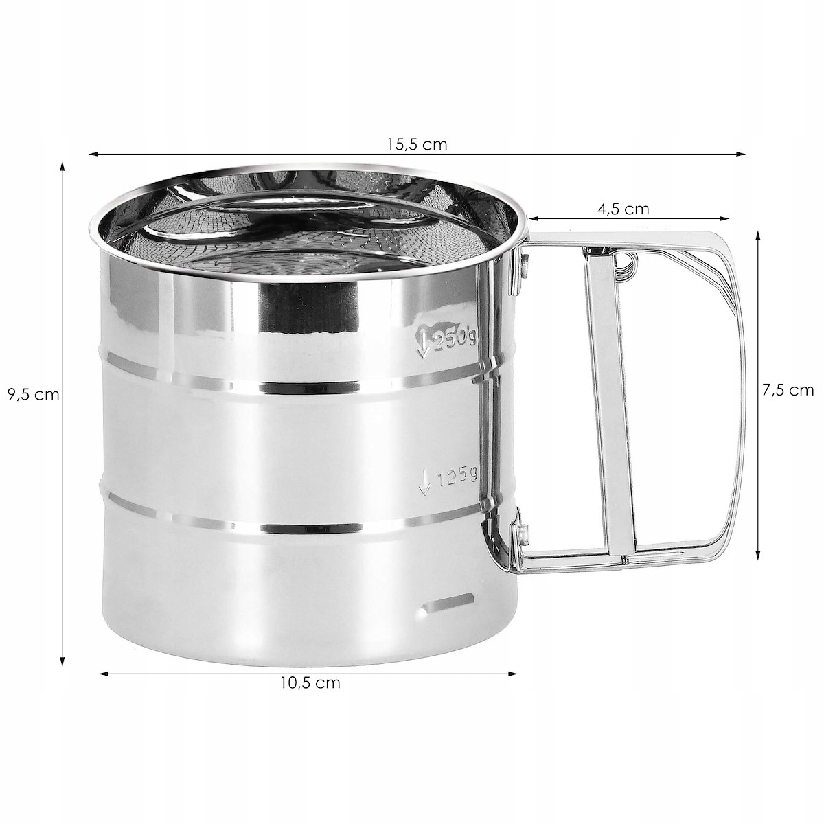 У зовнішній частині сита ми розмістили мірну чашку, яка однозначно полегшує роботу на кухні. Ще одним функціональним доповненням є механізм, який після стискання ручки автоматично просіває наше борошно! Ви точно оціните це зручне рішення.