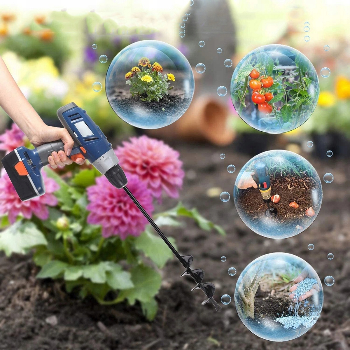 Ефективно свердліть отвори для рослин. Сівалки для рослин - це садовий інструмент, який ідеально підходить для швидкого свердління отворів для рослин. Це означає ефективне й акуратне озеленення бордюрів, клумб і кущів.