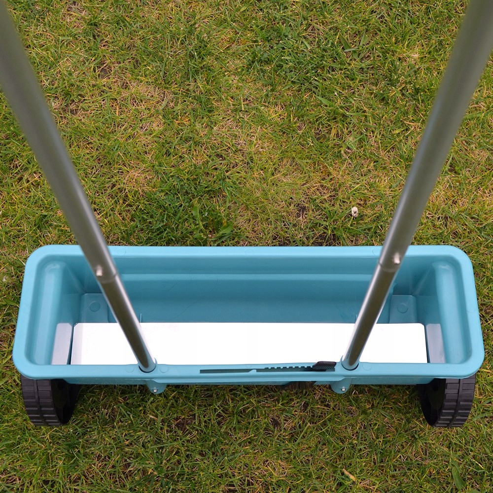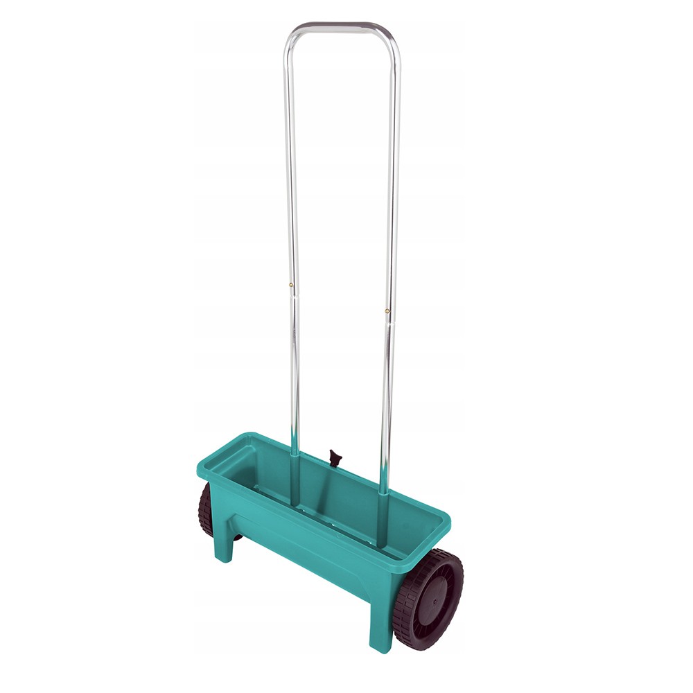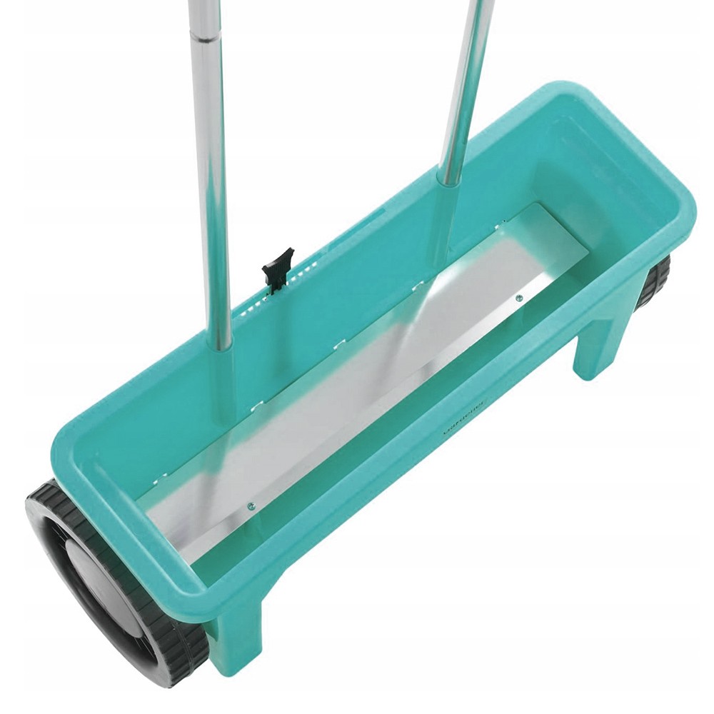 ✔ Мобільна сівалка виготовлена з високоякісного пластику. Він міцний і стійкий до пошкоджень. Він оснащений великими напрямними колесами, які забезпечують стійкість і зручне маневрування. Дві додаткові ніжки спереду дозволяють встановити розкидач у вертикальне положення. Довга зручна рукоятка безсумнівно підвищує комфорт роботи.