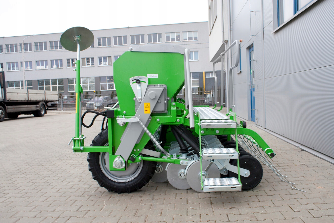 Стандартне оснащення включає гідравлічні маркери, платформу для полегшення завантаження бункера та зубчасті слідорихлювачі трактора.