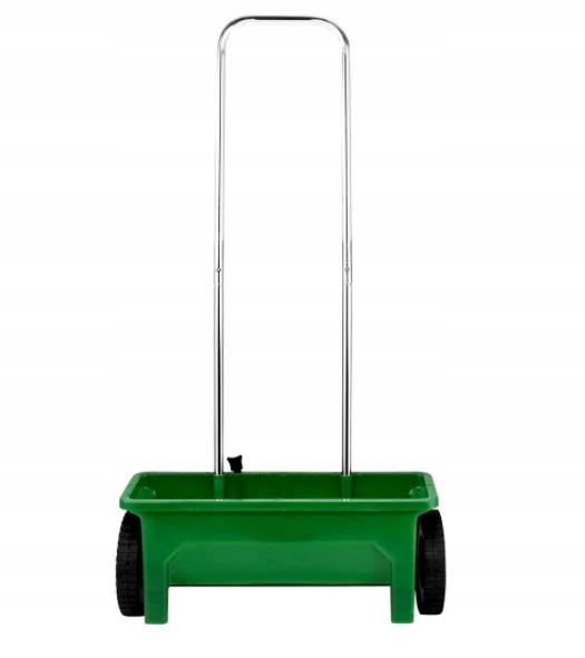 Якісний мобільний розкидач з великими колесами та регулюванням і фіксатором розкидання - це зручний спосіб розкидати насіння трави, добрива, сіль взимку .