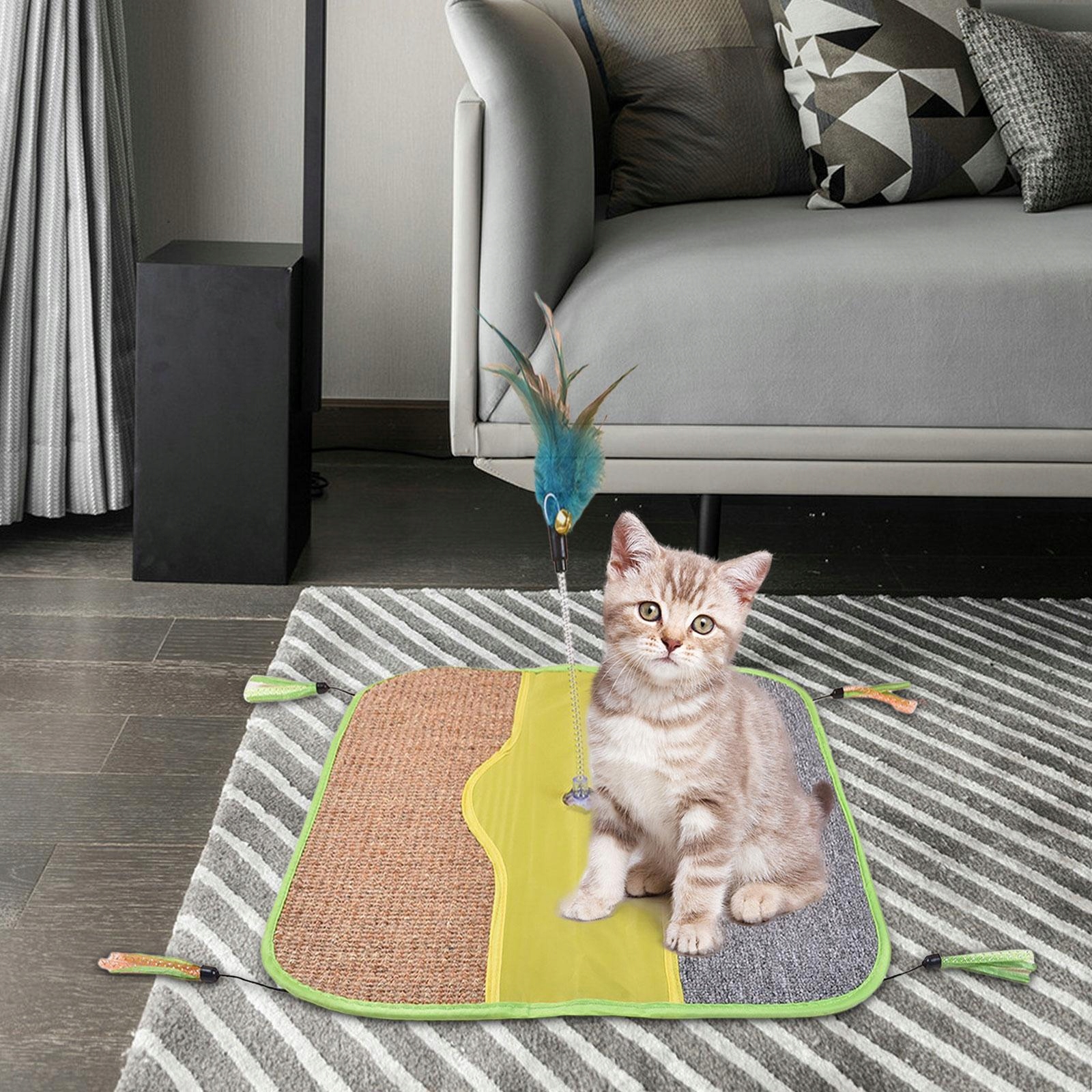 Сизалевий килимок для подряпин для котів Килимок Захист для дивана для котів Килимок для кошенят Іграшка з пір’ям