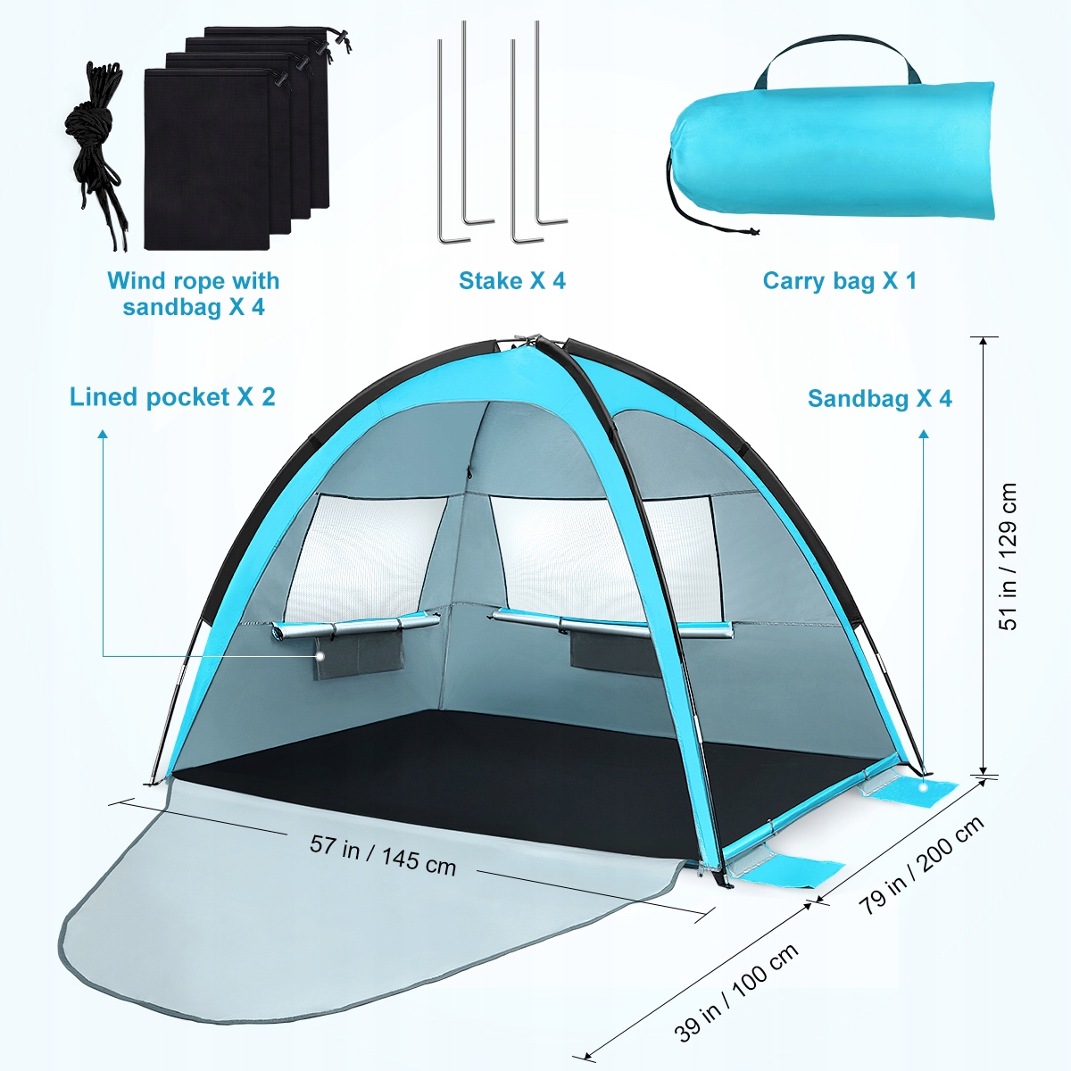 ✅ Вбудований пісок працює в 4 кутах намету. Додаткові мотузки для кріплення, опори та мішки з піском для захисту намету від сильного вітру.