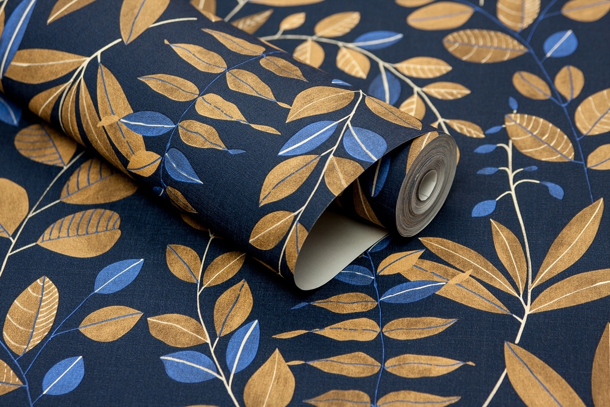 Скандинавські шпалери ГІЛКИ на ТЕМНО-СИНЬОМУ тлі