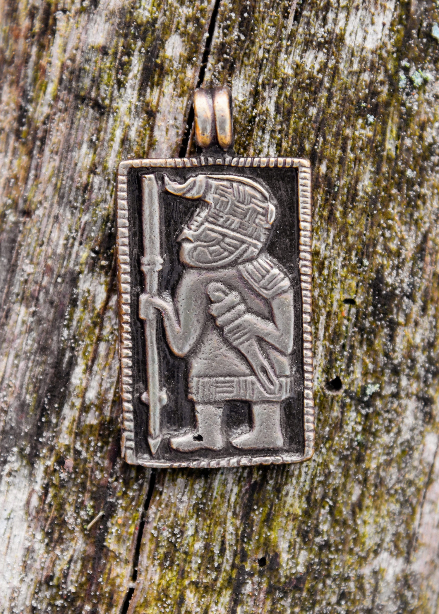 Мотив цього прекрасного скандинавського амулета був натхненний оригінальною знахідкою Вендельського періоду. У 1870 році на місці поховання ферми Бьорнховда поблизу Торслунди на шведському острові Еланд було знайдено частини бронзових обладунків, прикрашених цим мотивом воїна епохи Венделя.