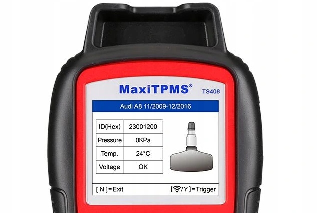 TS408 призначений для активації всіх відомих датчиків TPMS. Після вибору відповідної марки, моделі та року випуску TS408 може легко активувати всі датчики та зчитувати ID, тиск, температуру та стан батареї.
