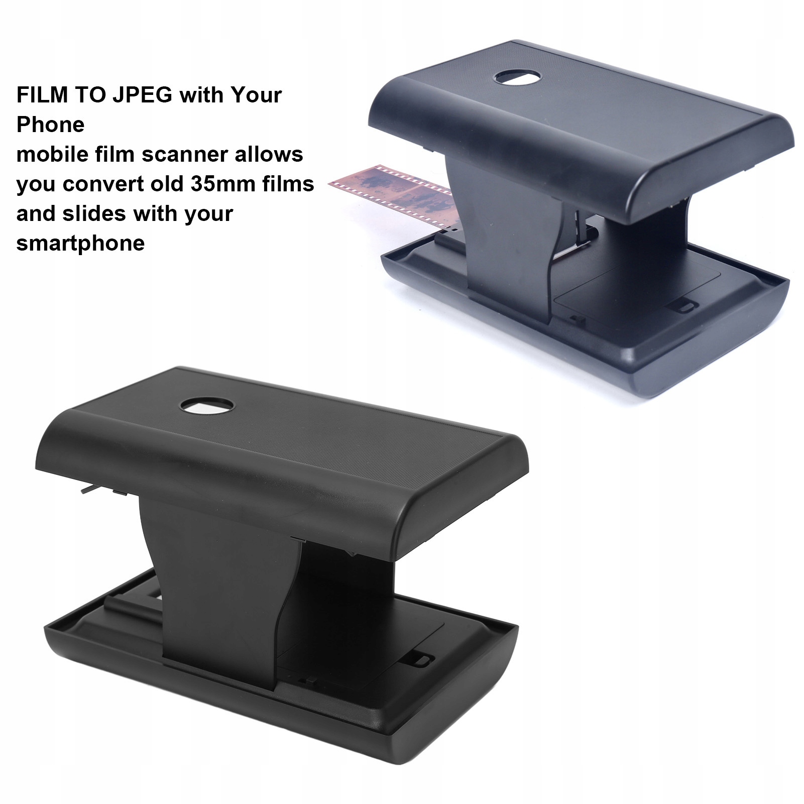 1. Простий і дуже простий у використанні: Вставте слайд або негатив до лотка, увімкніть вбудовану підсвічування світлодіодного світло, покладіть об'єктив смартфона над отвором, а потім натисніть, щоб захопити.