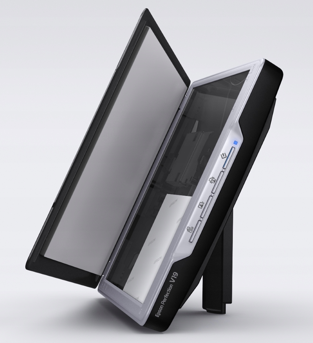 Простий у використанні та живленні через USB-кабель сканер має тонкий корпус і розроблений для займати якомога менше місця. Інтегрована підставка збільшує його гнучкість. Його можна використовувати як вертикально, так і горизонтально, що означає більшу економію місця. Завдяки роздільній здатності 4800 dpi і високій швидкості сканування V19 здатний швидко створювати високоякісні скановані зображення. Легко зберігайте та діліться фотографіями в Інтернеті, відсканувавши їх безпосередньо у Facebook і Picasa.