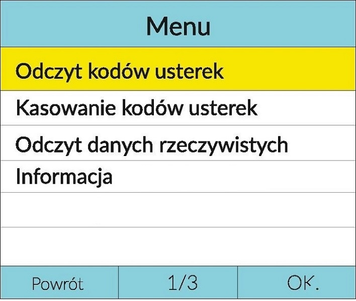Тестер — це автономний пристрій, оснащений кольоровим дисплеєм, міцним корпусом, і швидким процесором ARM. Він живиться безпосередньо від діагностичного роз’єму автомобіля та має повне ПОЛЬСЬКЕ меню (включаючи повні польські описи кодів несправностей).
