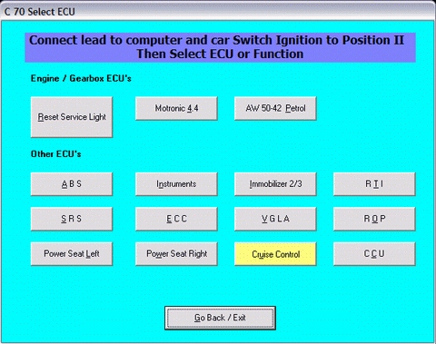 - C70 - Двигун (до 1998), автоматична коробка передач (до 1999), ABS (до 2004), SRS (до 2004), лічильник (до 1998), іммобілайзер (до 2004), ECC (до 1998), VGLA (до 1998), RTI (до 1998), пам'ять сидінь (до 1998), ROP (до 1998), CCU (до 1998)