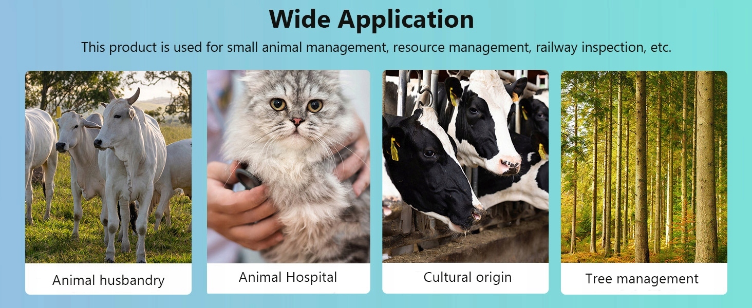 Забезпечені райони: Цей сканер широко використовується в управлінні дрібними тваринами, управлінням ресурсами, інспекцією залізниць, розведенням, управлінням деревами, лікарнями тварин тощо