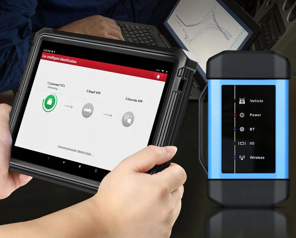 Тестер — це автономний прилад для майстерні, діагностичний комбайн, оснащений сенсорним екраном 10'1 дюймів, броньований корпус майстерні типу rugget! Він оснащений дуже швидкою операційною системою Android 9.0 і дозволяє проводити бездротову діагностику через інтерфейс Bluetooth.