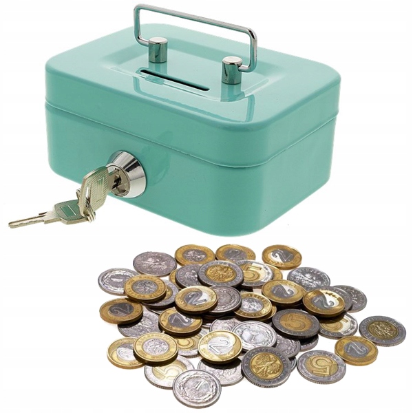 СКАРБ МЕТАЛЕВА КАСЕТА ключі гроші монети