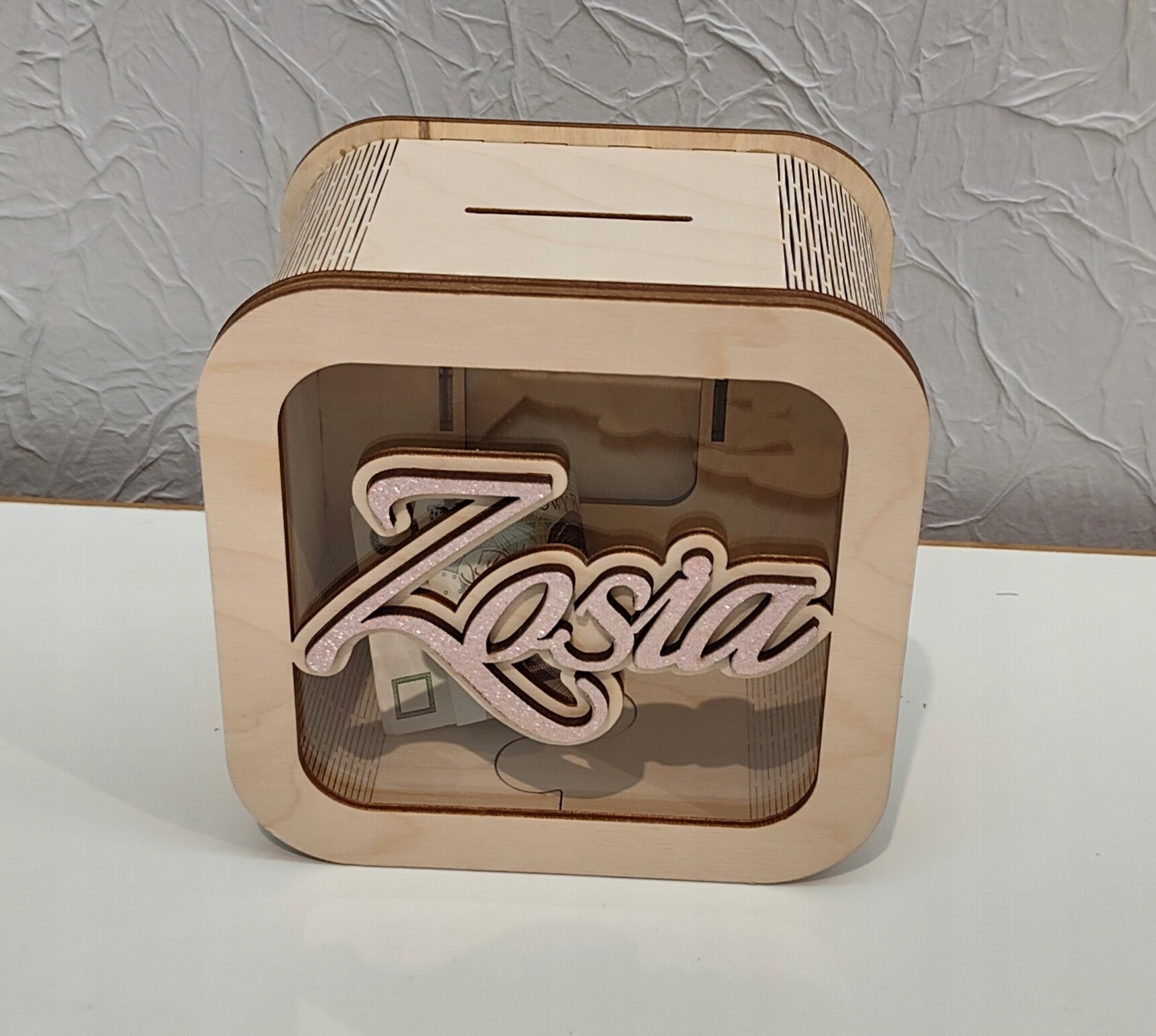 Скарбничка, ім'я дитини, блиск, рожевий, синій, фанера, 15х15 см, подарунок