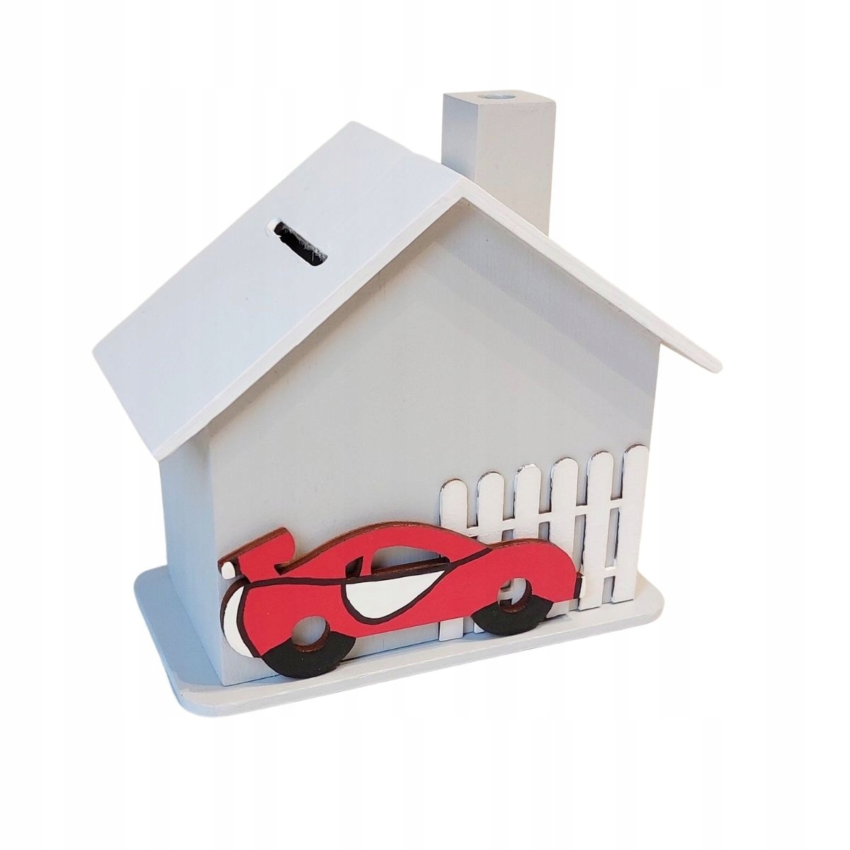 Познайомте свою дитину з захоплюючим світом заощаджень завдяки цій дерев'яній скарбничці у формі будиночка з димоходом і огорожею.