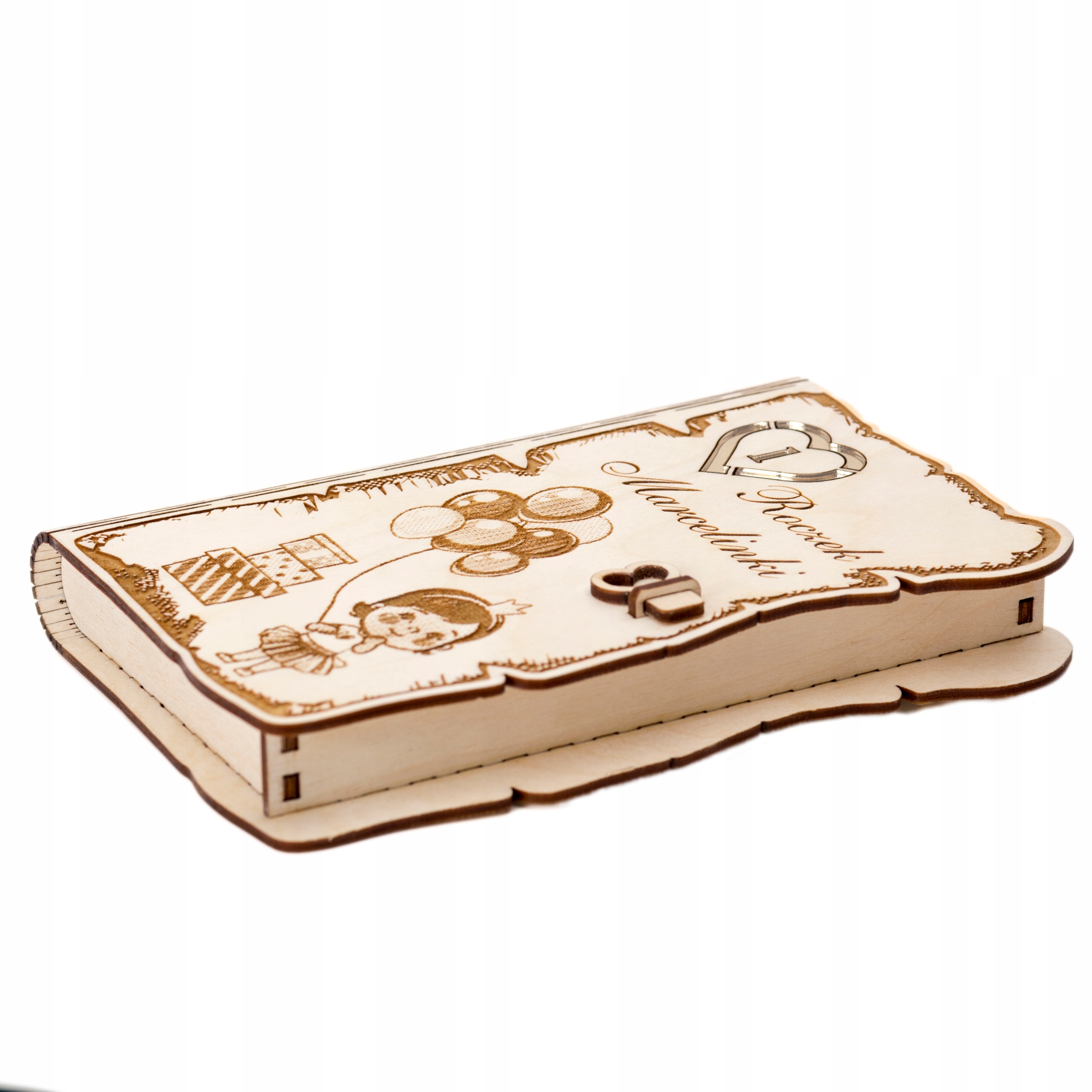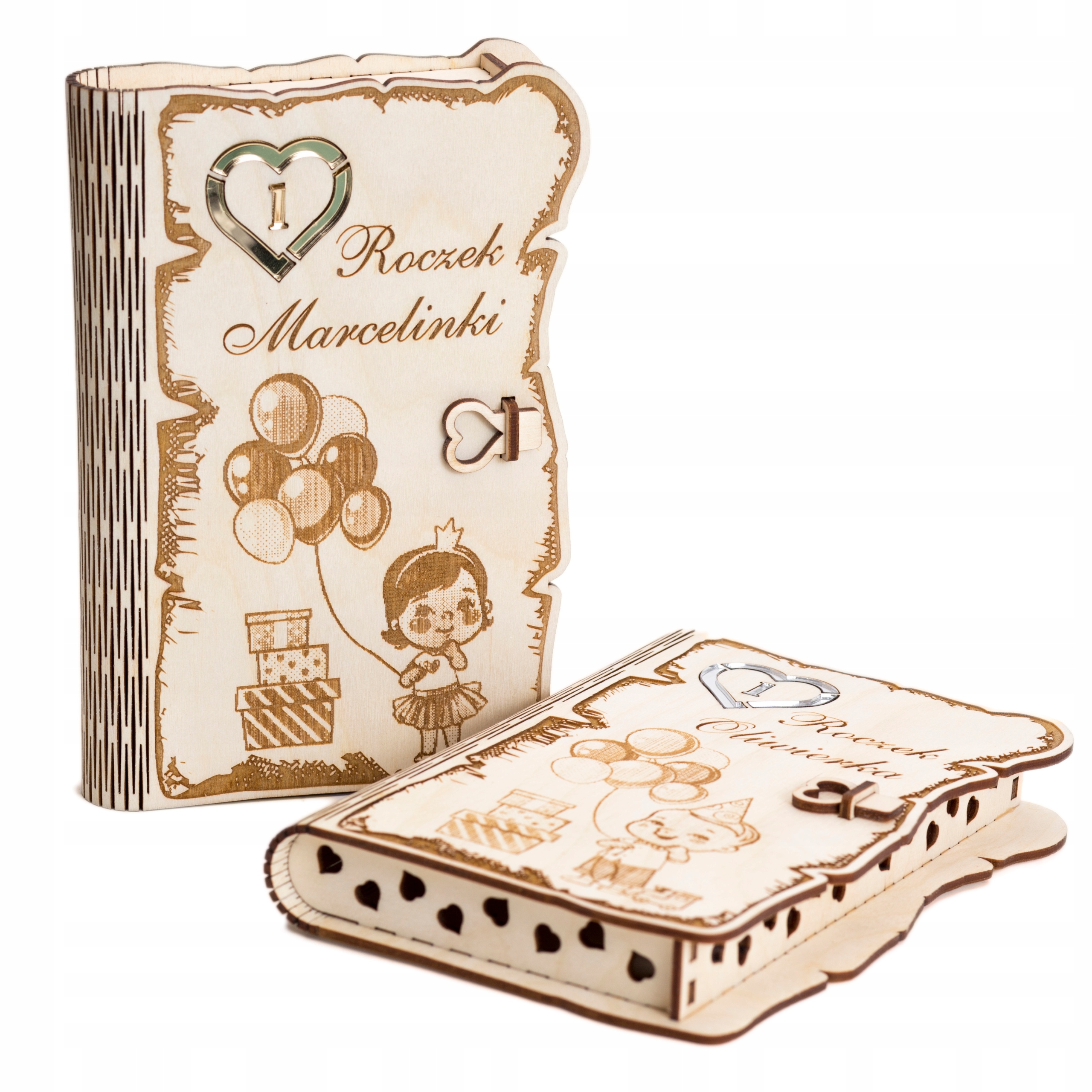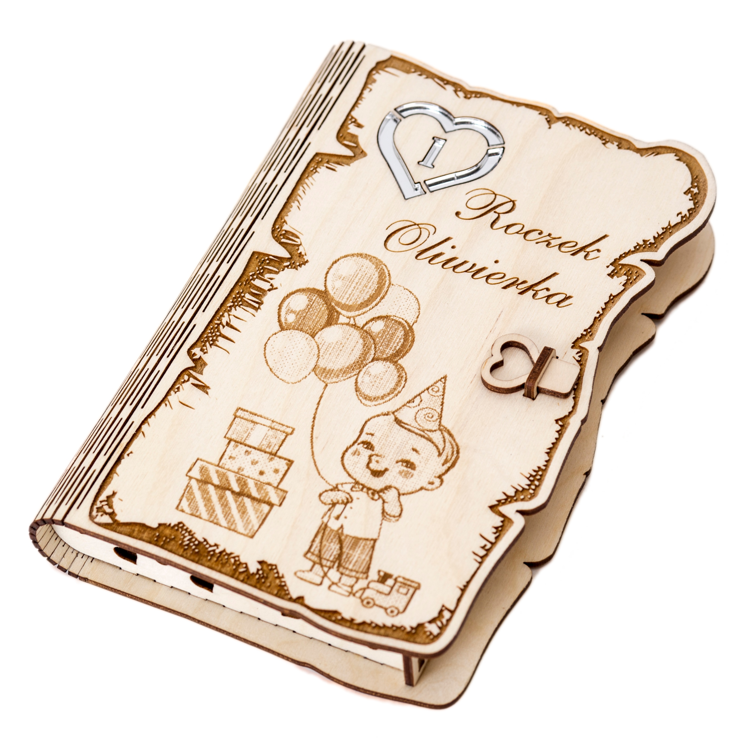 Скринька з індивідуальним гравіюванням для грошей у формі книжки для однорічної дитини