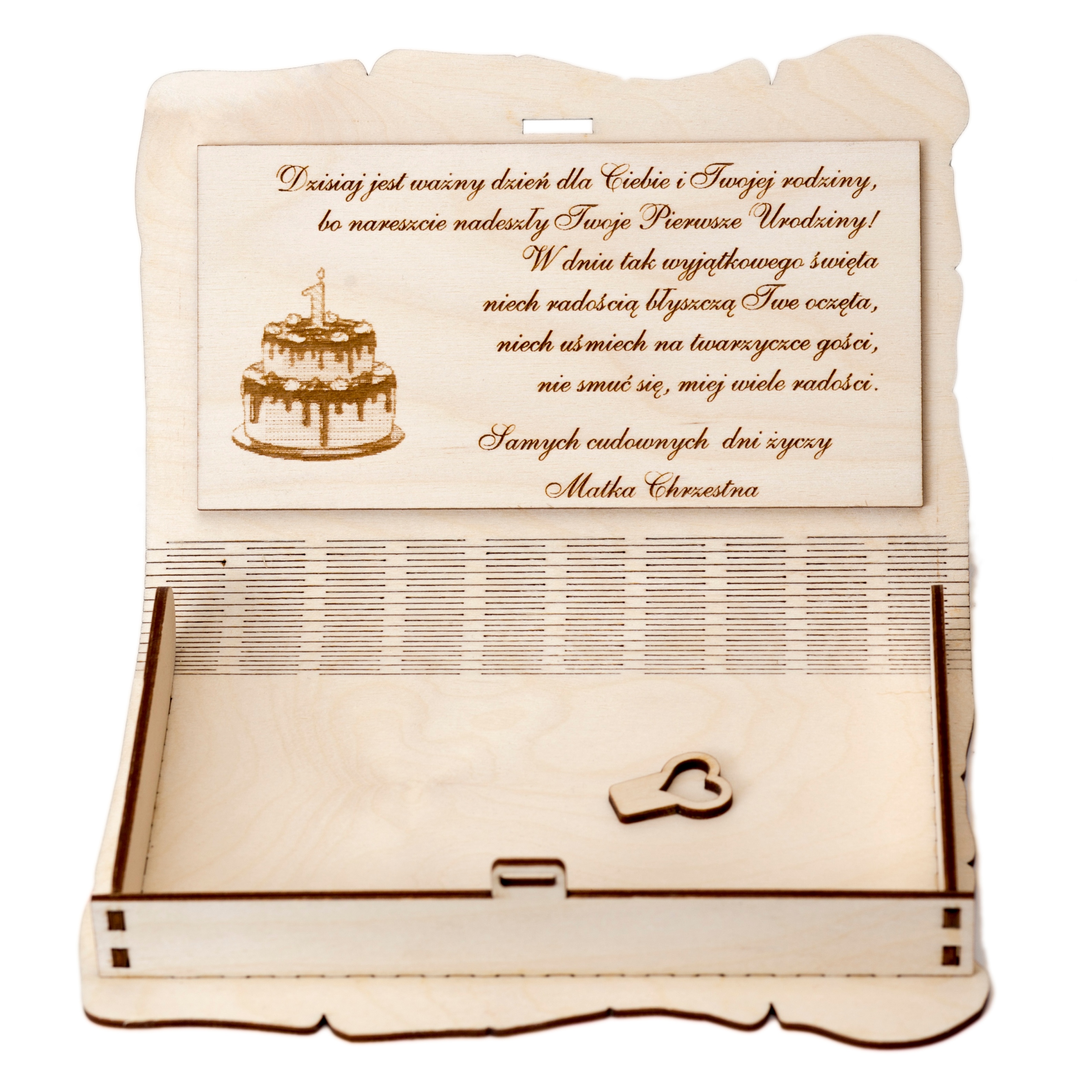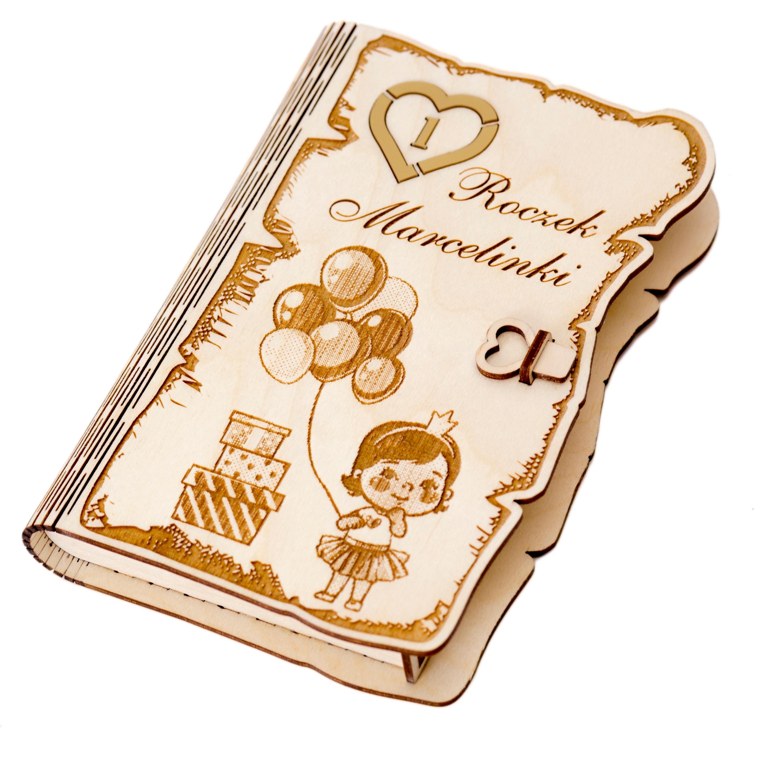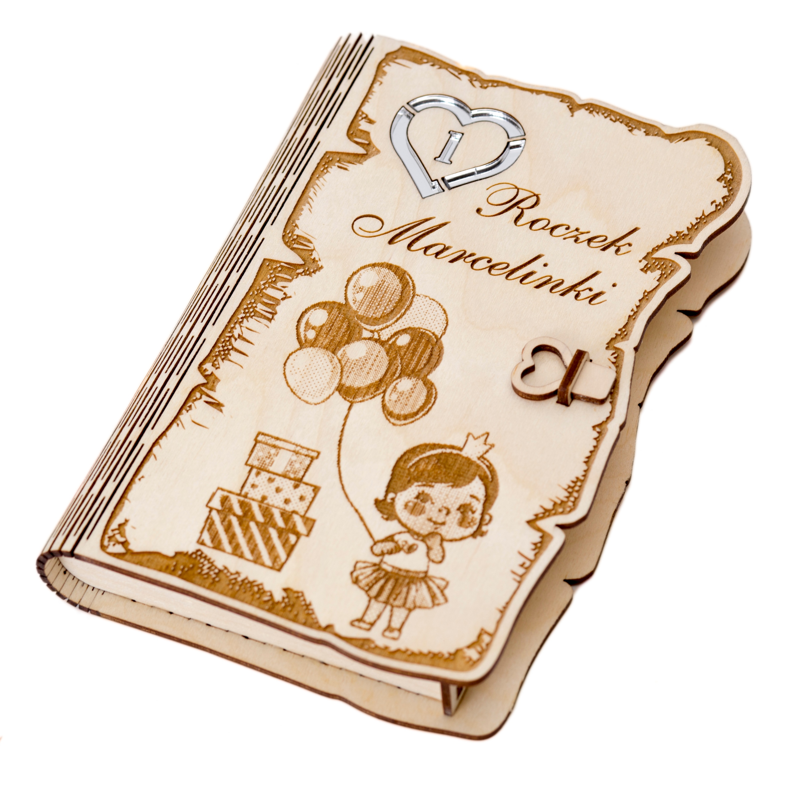 Скринька з індивідуальним гравіюванням для грошей у формі книжки для однорічної дитини