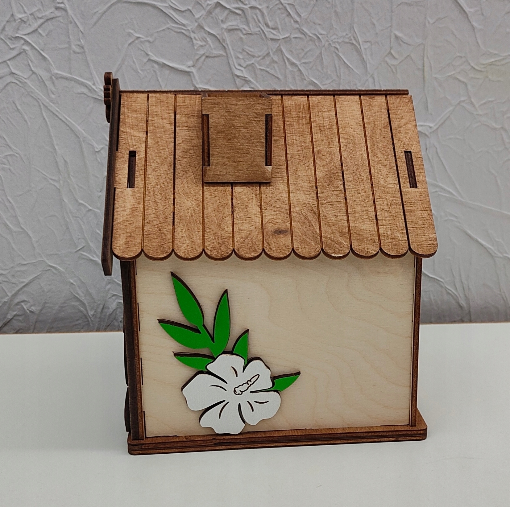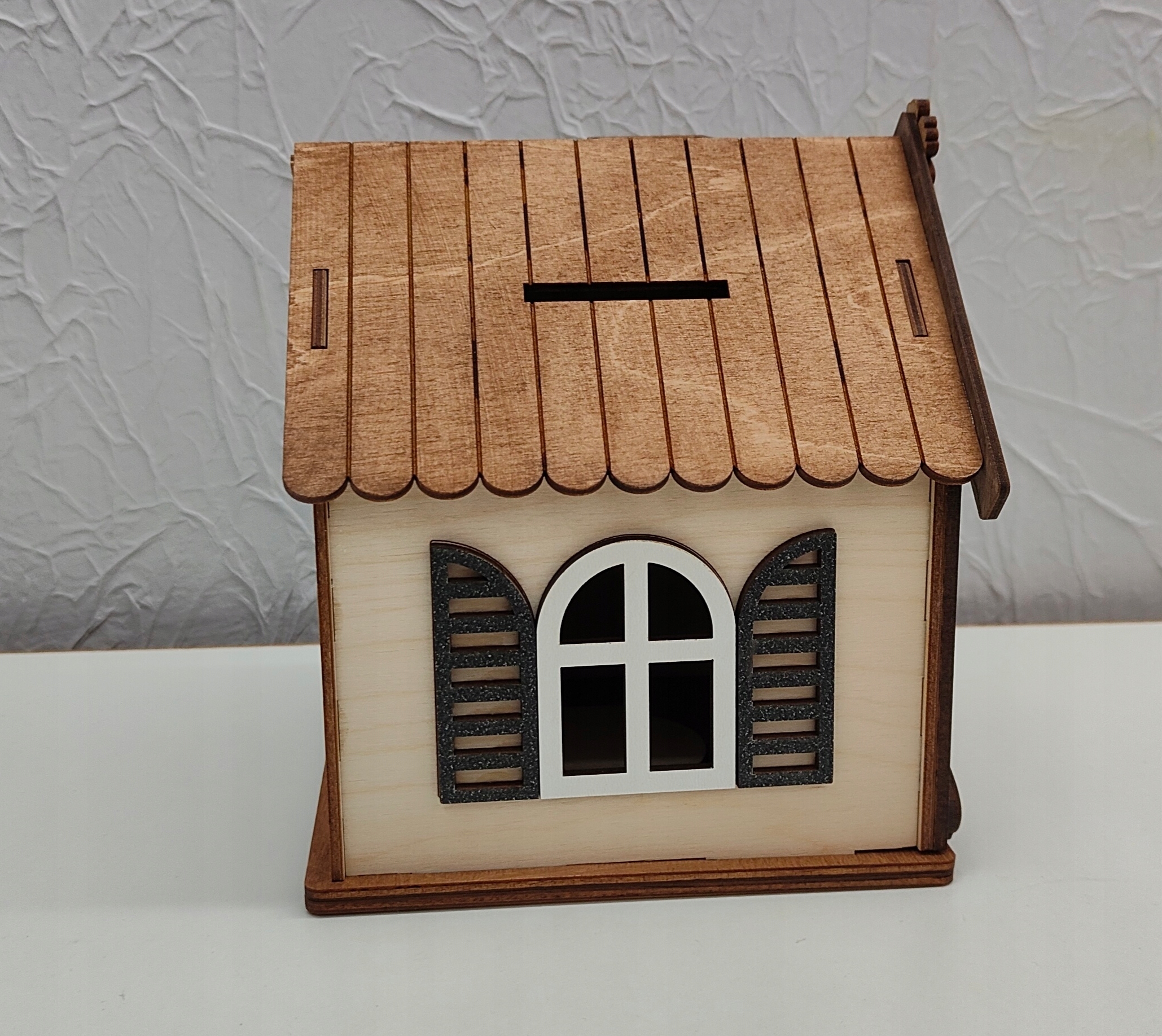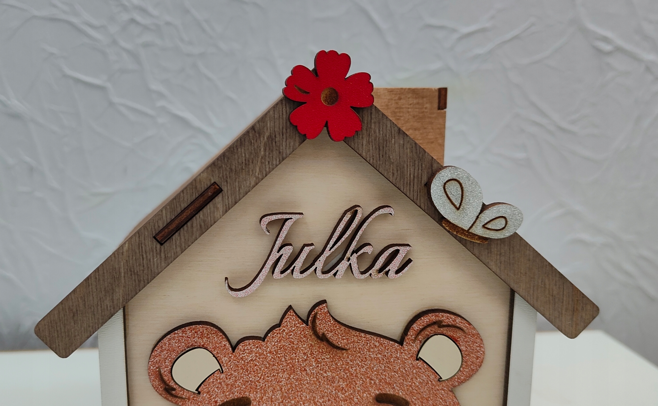 🏠Дерев'яна скарбничка у формі будиночка з блискучим коричневим ведмедиком