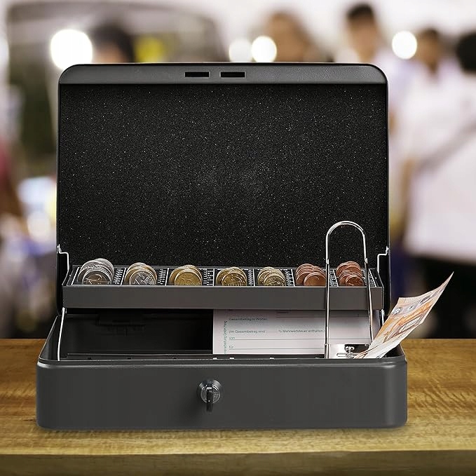 Бокс Relaxdays — це тверда металева касова коробка з замком на ключ, ідеально підходить для ярмарків, вечірок, офісів, клубів і домашнього використання. Оснащений дошкою для підрахунку монет євро та чотирма відділеннями для банкнот, він дозволяє швидко та зручно організувати вашу готівку.