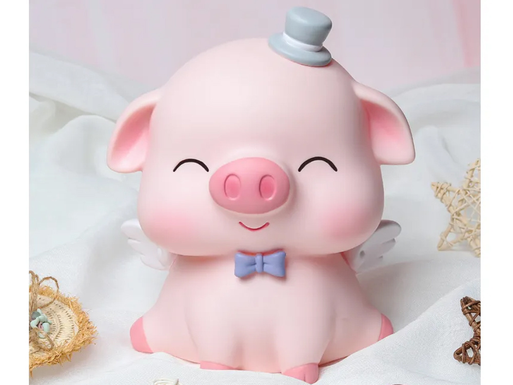 Чарівна скарбничка допоможе вам подбати про свої заощадження. Скарбничка виготовлена з пластику, має усміхнене обличчя, краватку-метелик під шиєю, головний убір, крила. Згідно з китайською традицією, свиня є знаком достатку, щастя і радості. Отже, це ідеальне обладнання для збору грошей!