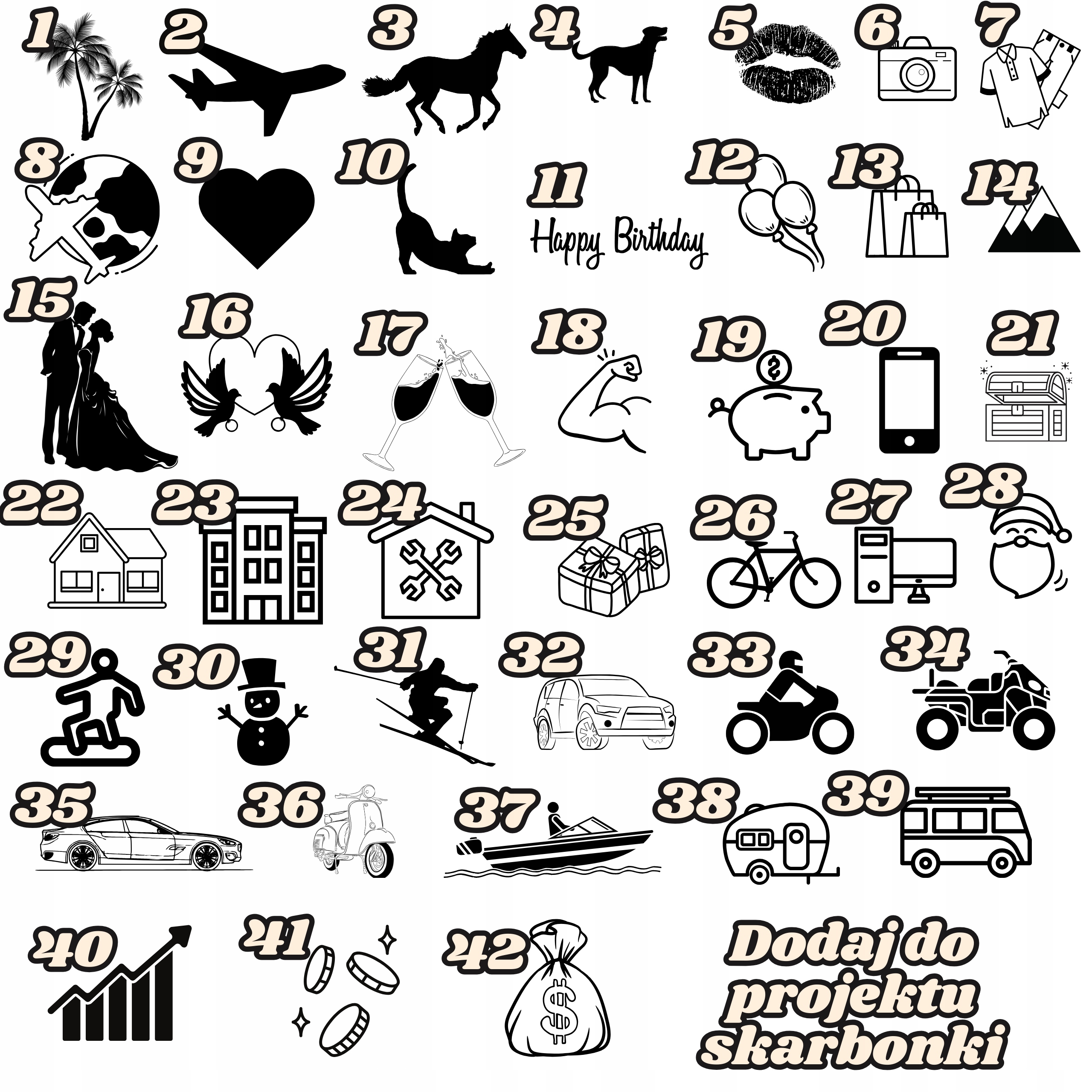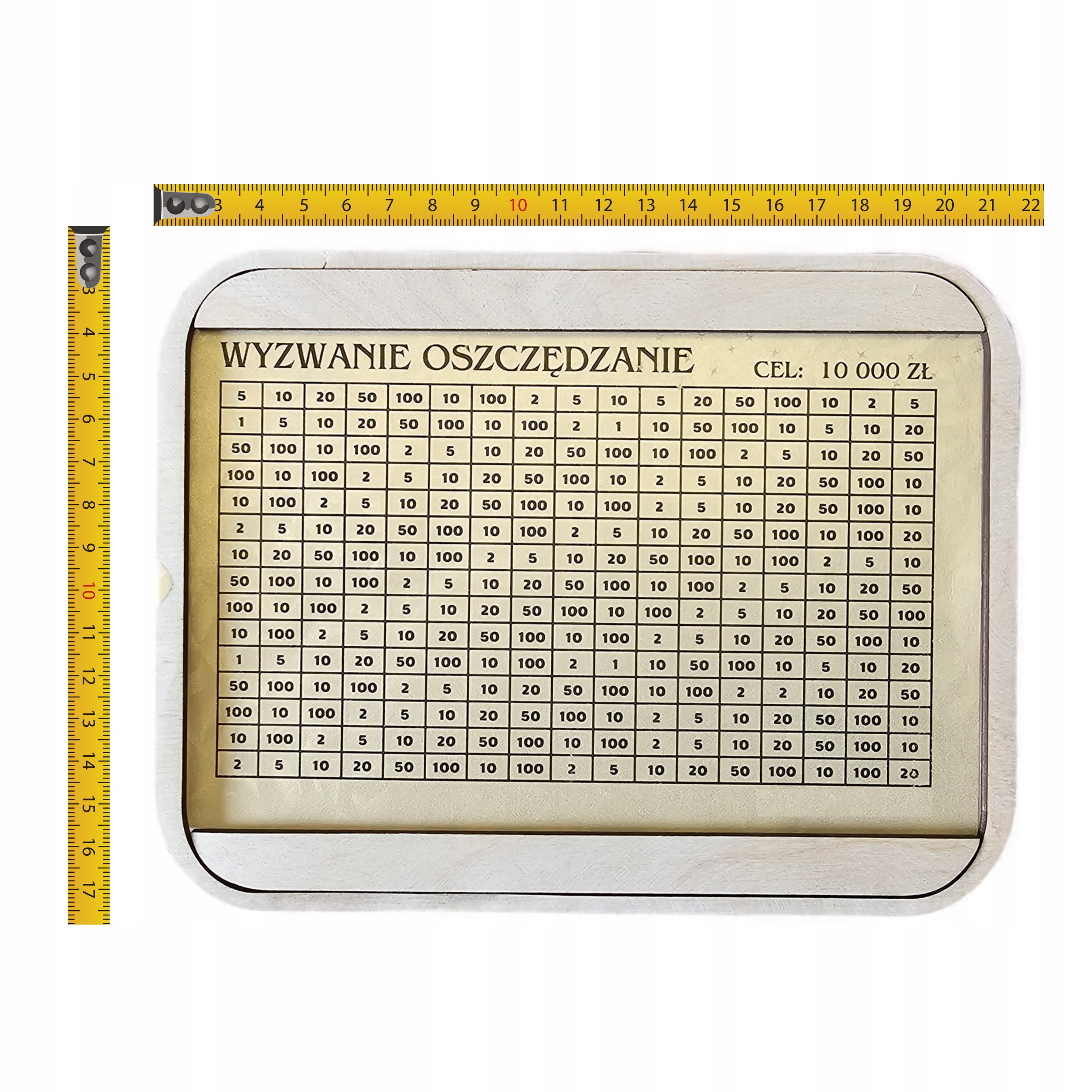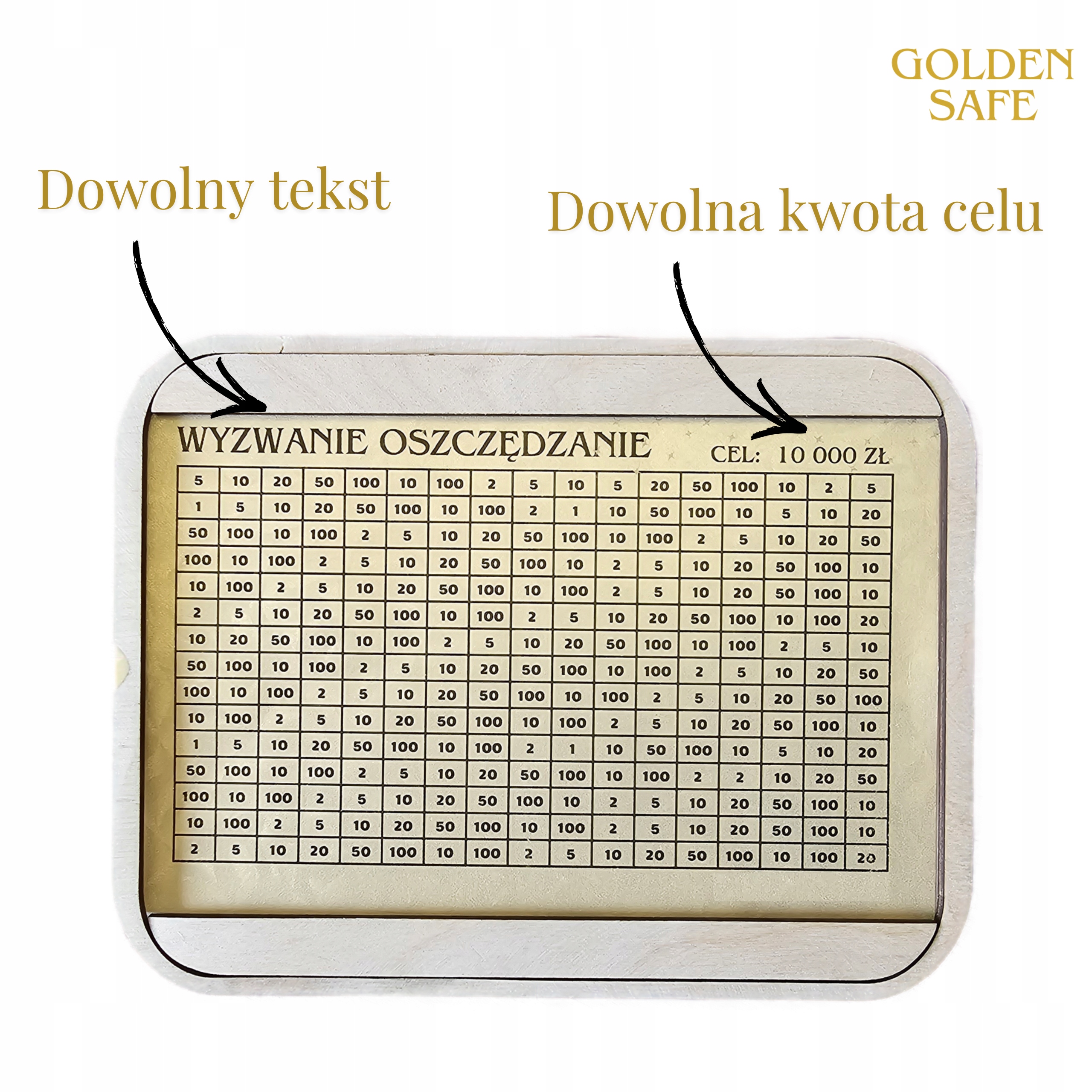 - Набір включає 1 золоту картку-скарбничку з таблицею, на якій ви можете викреслювати наступні суми, додаючи готівку.